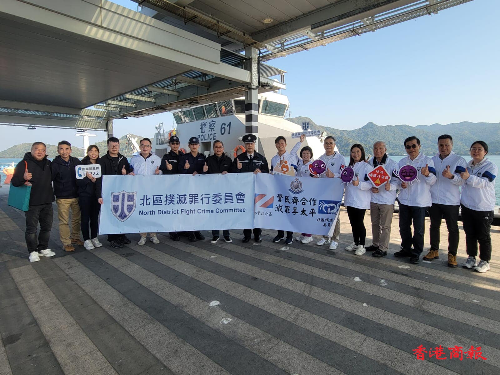 警民關(guān)係組職員及新界北防止罪案辦公室聯(lián)同落馬洲河上鄉(xiāng)村長(zhǎng)昨晨(6日)向村民宣傳防爆竊信息。至下午邊界警區(qū)警民關(guān)係組人員聯(lián)同水警北分區(qū)指揮官李嘉偉署理警司、水警北分區(qū)人員、北區(qū)民政事務(wù)處助理專員陳傳賢、沙頭角區(qū)鄉(xiāng)事委員會(huì)主席李冠洪,MH、北區(qū)撲滅罪行委員會(huì)委員楊田田、莫慕潔、歐振成,MH、賴心、李國(guó)耀、李嘉駿及吉澳村代表,透過(guò)跨部門多機(jī)構(gòu)合作攜手滅罪,在吉澳進(jìn)行冬防滅罪宣傳活動(dòng),提醒村民慎防罪案發(fā)生 。