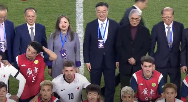 文化體育及旅遊局局長羅淑佩、中國香港體育協(xié)會暨奧林匹克委員會會長霍震霆、中國香港足總主席霍啟山,以及會長貝鈞奇都是今場的座上客,羅淑佩於賽後與兩隊球員握手、大合照。