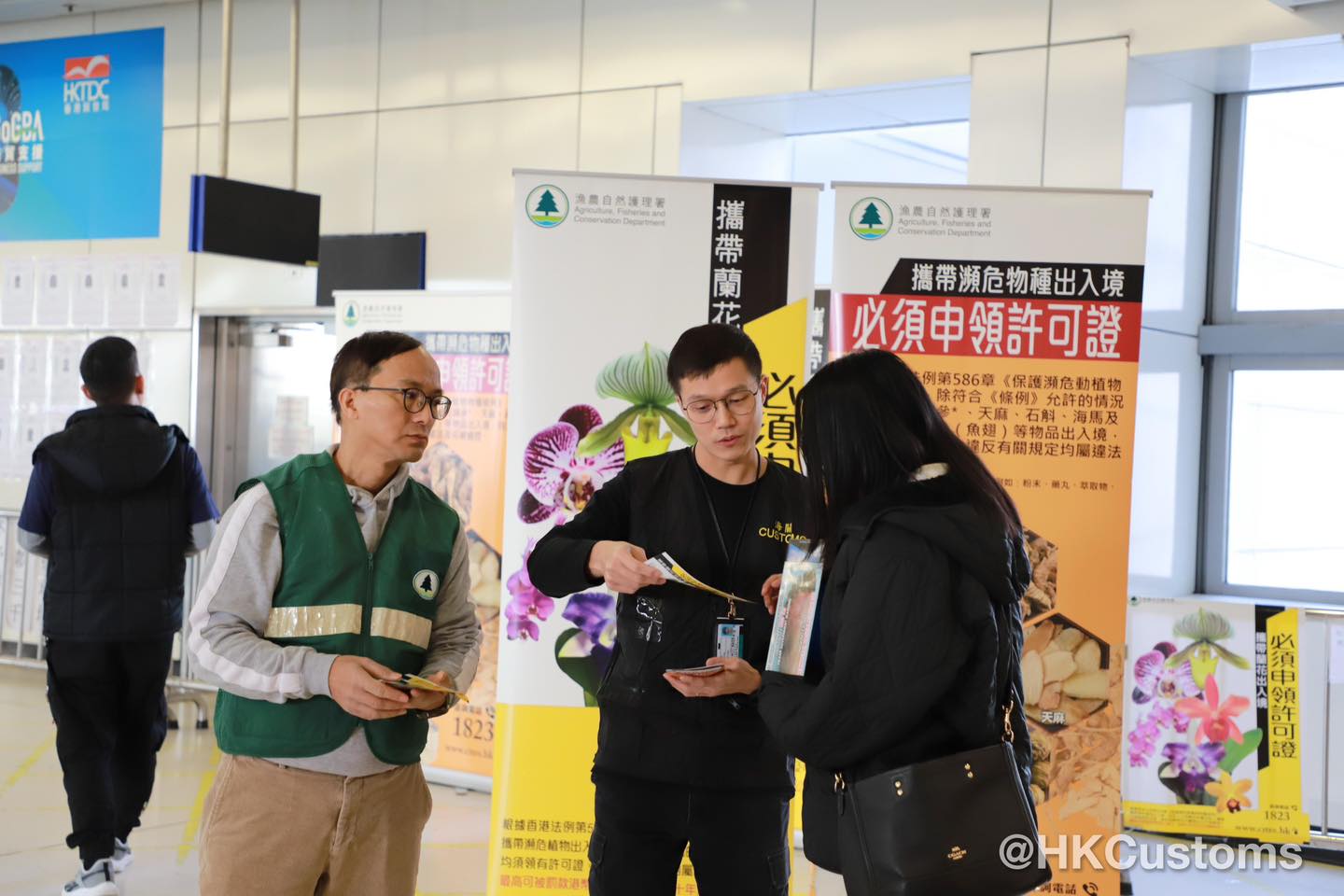 海關(guān)表示,近日在陸路邊境口岸緝獲多宗市民非法由內(nèi)地攜帶蘭花返港案件,當(dāng)中有市民誤以為人工培植蘭花並非受管制。為免市民誤墮法網(wǎng),海關(guān)聯(lián)同漁護(hù)署已加強(qiáng)在各陸路邊境口岸宣傳,並向市民派發(fā)《旅客過關(guān)小錦囊》 和有關(guān)瀕危物種管制傳單,提醒市民各類物品進(jìn)出口管制。