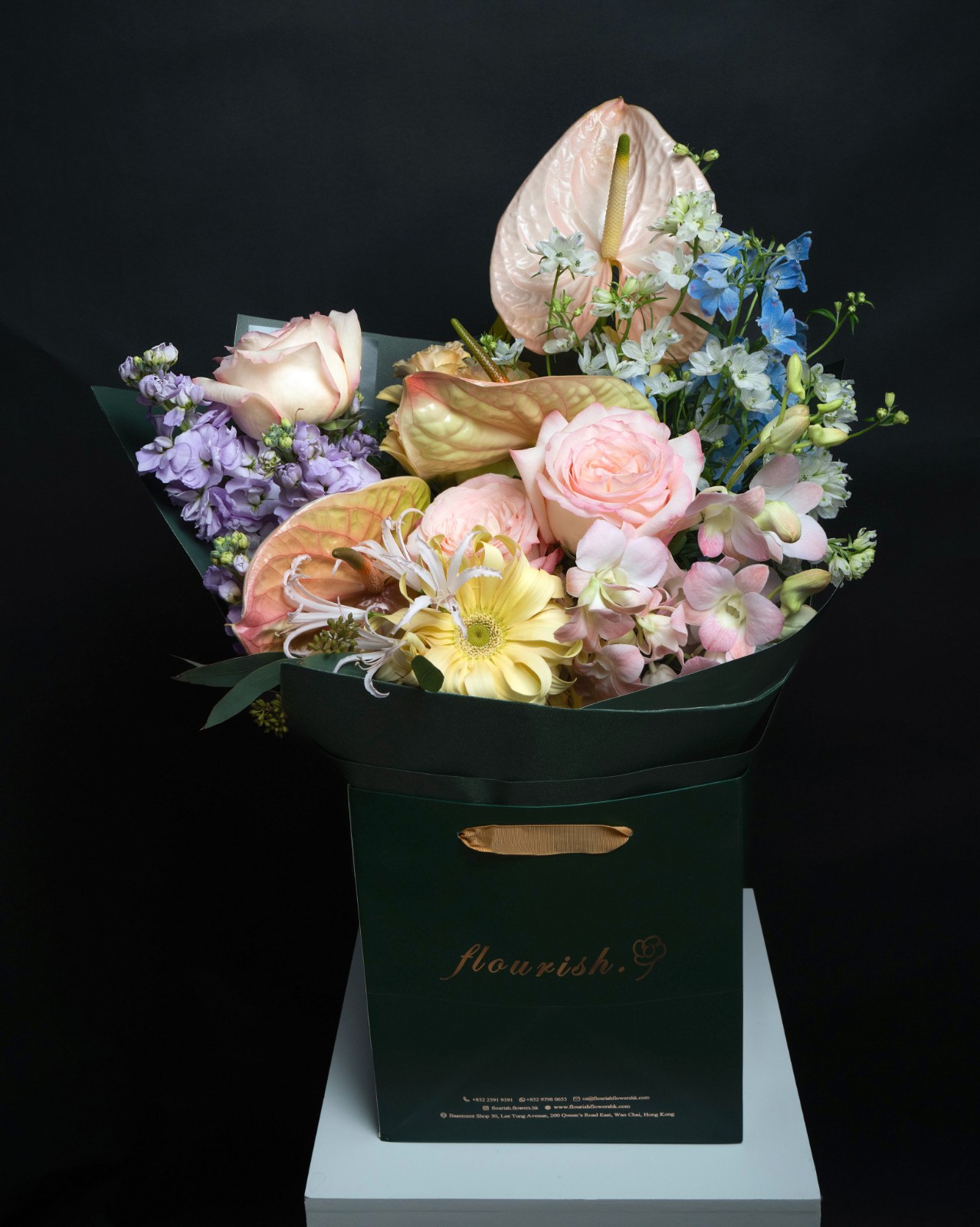 「漸進(jìn)曲(HK$1480至HK$2980)」充滿了活力,包含粉玫瑰和快樂的黃色非洲菊,俏皮的組合捕捉了愛情開花的階段,恍如兩顆心靈越發(fā)親近,分享快樂時(shí)光。五顏六色的花朵映射出加深聯(lián)繫的情感,適合想要表達(dá)日益增長(zhǎng)愛意的人。