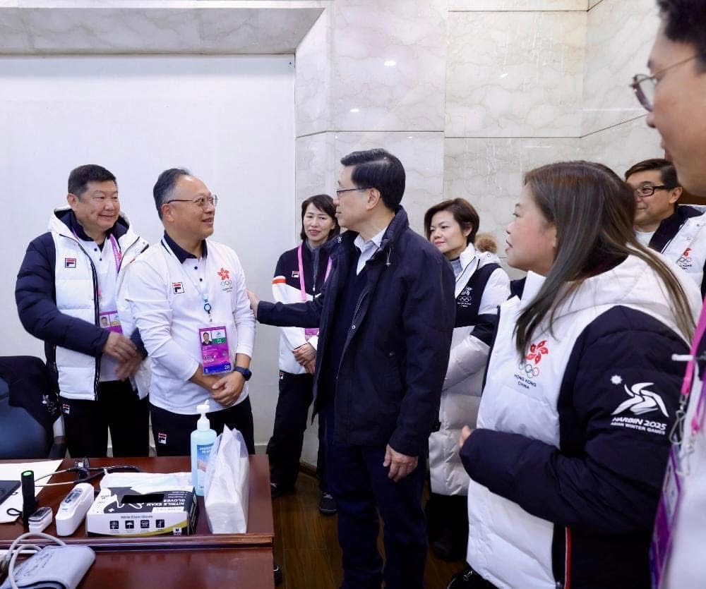 今日(8日)是哈爾濱亞冬會開幕後的首個比賽日,行政長官李家超早上前往冰上項目運動員村與港隊運動員、領(lǐng)隊、教練、醫(yī)療隊伍代表會面交流。他今午於社交平臺發(fā)文表示,港隊派出了破紀錄的逾70名運動員參賽,很開心看到運動員身心狀態(tài)都很好。並鼓勵他們放鬆心情、發(fā)揮最佳水平。
