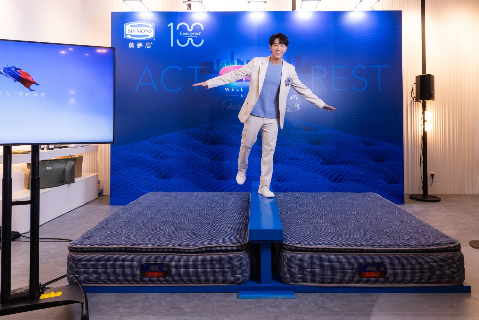 在新店開幕活動上,品牌的亞洲CEO伊藤正文來港主持。歌手馮允謙擔任嘉賓,他坦言藝人生活忙碌,睡眠質(zhì)素很重要,因為平時睡得少,一張優(yōu)質(zhì)床褥能為他「充電」,讓他以最佳狀態(tài)應(yīng)付密集的工作日程。馮允謙並挑戰(zhàn)活動現(xiàn)場的「Act & Rest, Well Balanced」平衡木遊戲,站立於平衡木裝置上,置身於兩張日本製造的Beautyrest甜夢系列100周年紀念床褥中間,感受動態(tài)與靜態(tài)間的微妙平衡。