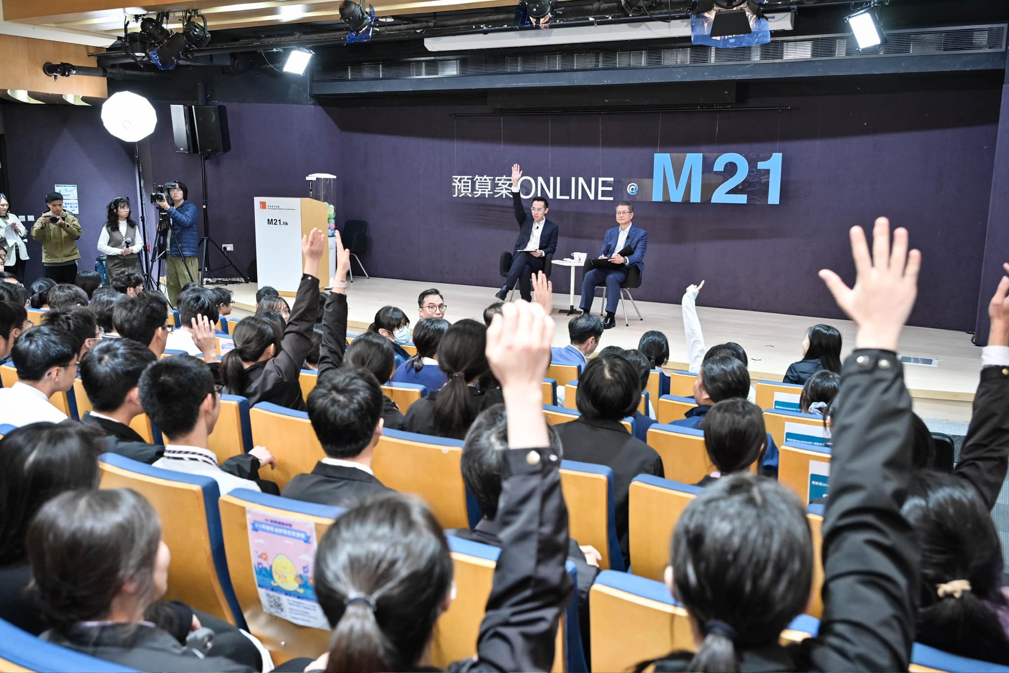 財政司司長陳茂波今日(12日)出席一場以青年人和學生為主的預算案論壇,與約260位中學生、大專生和在職青年對談,分享對公共財政策劃的心得,並了解青年的回應與看法。