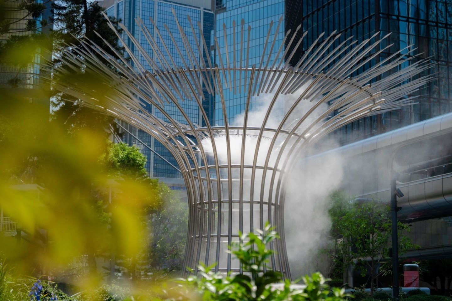 花園同時展出國際知名藝術(shù)家以大自然為主題創(chuàng)作的藝術(shù)作品,包括美國環(huán)境藝術(shù)家內(nèi)德·卡恩(Ned Kahn)首個於香港永久展出的 「零碳動態(tài)藝術(shù)裝置」《生息之源》(Breathing Tree)。這座約 7 米高的藝術(shù)裝置結(jié)合風(fēng)、水及霧的元素,形象化地展現(xiàn)自然、動態(tài)與能量。