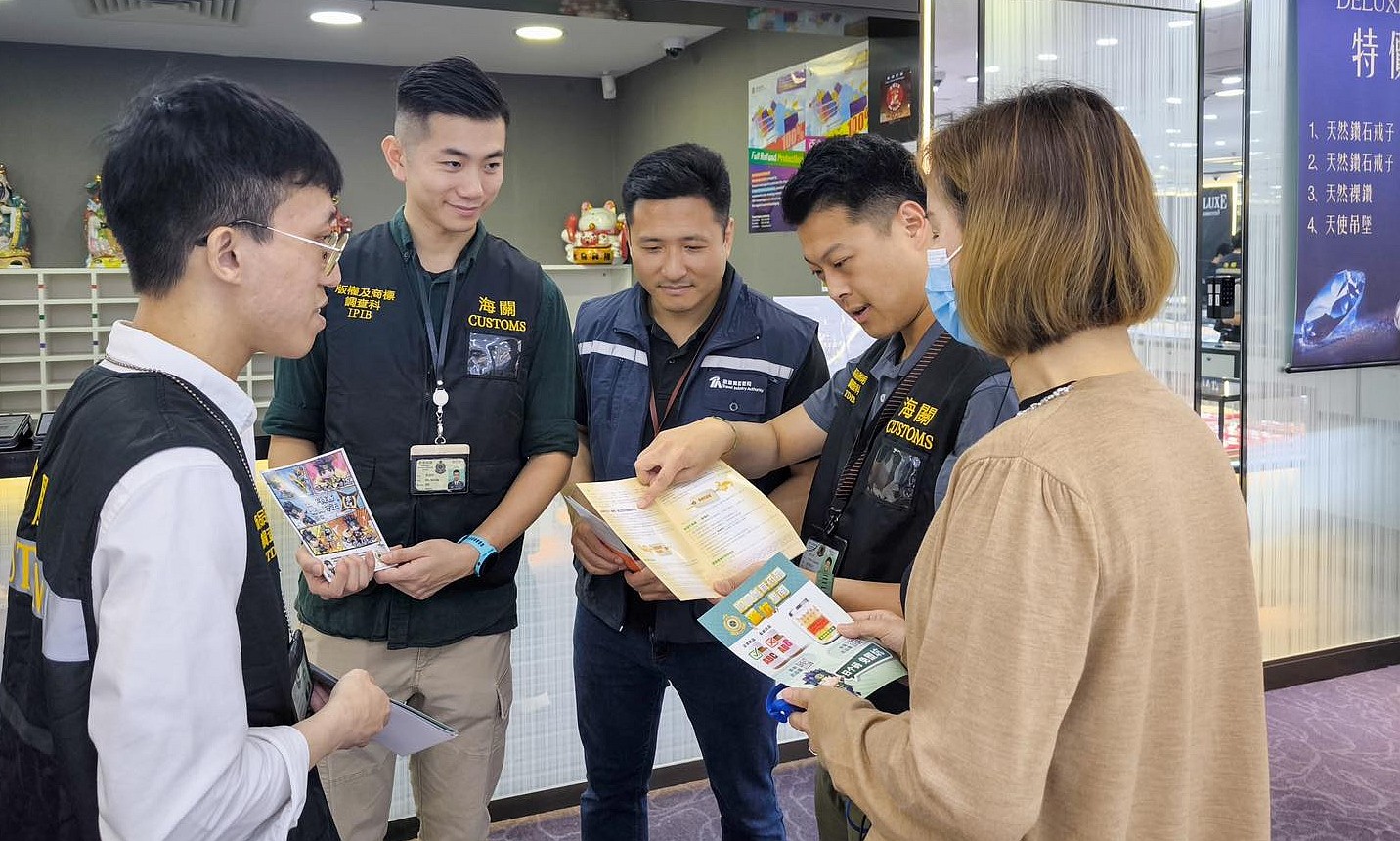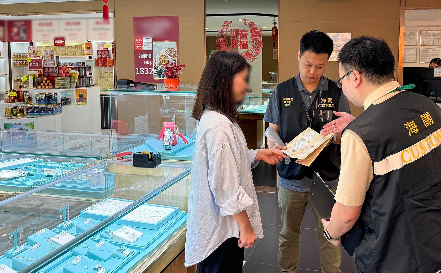 海關(guān)表示,內(nèi)地勞動(dòng)節(jié)黃金周臨近,昨日(17日)海關(guān)與旅遊業(yè)監(jiān)管局(旅監(jiān)局)人員進(jìn)行聯(lián)合巡查,於尖沙咀、土瓜灣和紅磡等多個(gè)旅客熱門購物點(diǎn),向旅監(jiān)局旗下已註冊商戶推廣合規(guī)經(jīng)營原則,並提醒商戶須遵守商品說明條例規(guī)定。