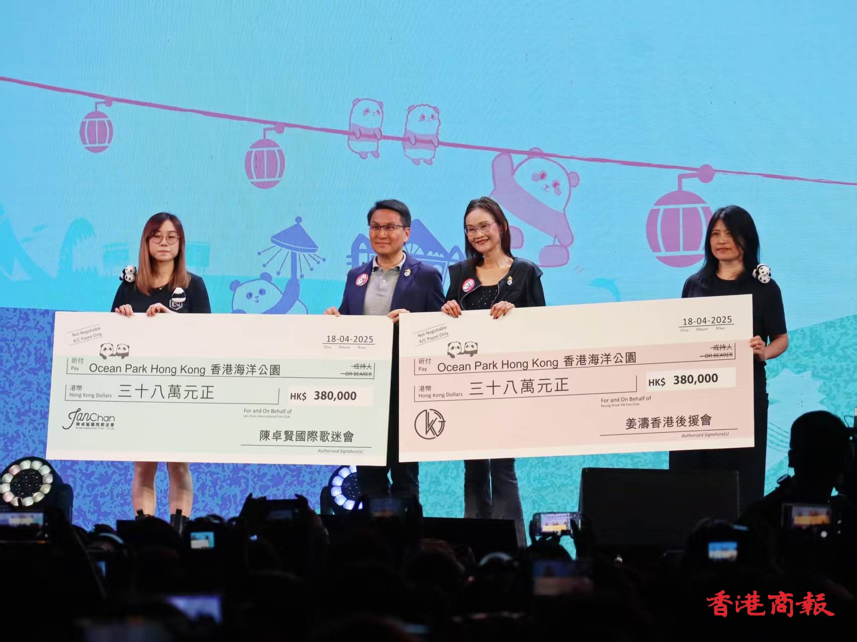 陳卓賢國際歌迷會及姜濤香港後援會分別捐贈(zèng)38萬港元,合共76萬港元予海洋公園。