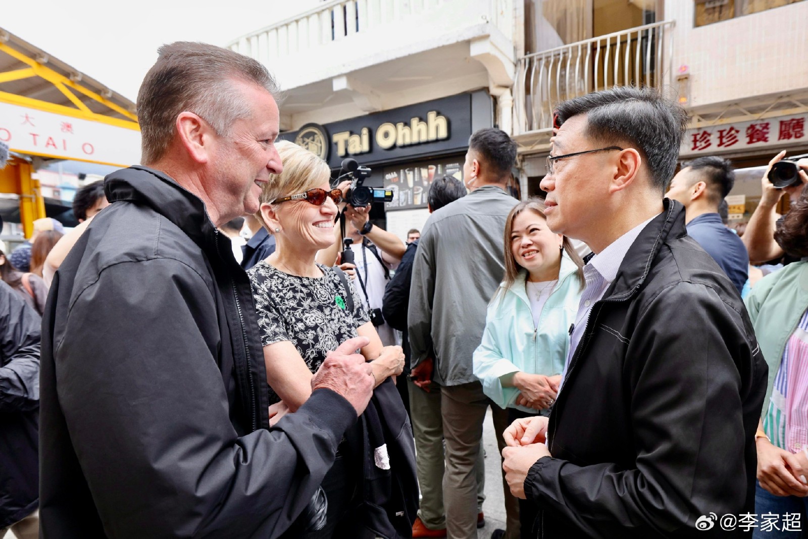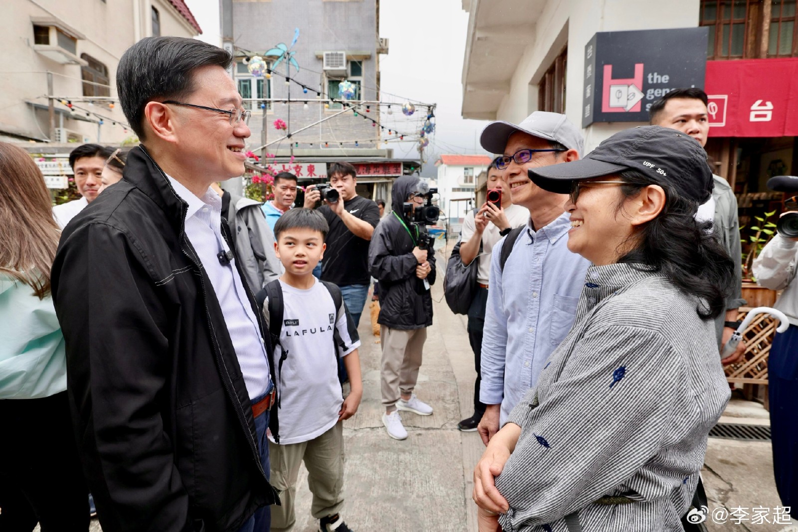 在大澳期間,李家超沿途向不少店舖員工、市民以及遊客打招呼,停下來與他們聊天,關(guān)心他們的工作、學(xué)業(yè)或生活,不時有市民和遊客熱情地和李家超自拍。