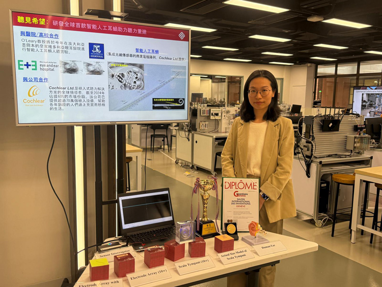 參與研究的崔靜嫻,其團(tuán)隊(duì)研發(fā)出超微細(xì)且兼具生物相容性的塑料光纖傳感器,並將其整合到人工耳蝸電極陣列結(jié)構(gòu)中,以提升人工耳蝸植入手術(shù)的導(dǎo)航精度與組織保護(hù)效能。