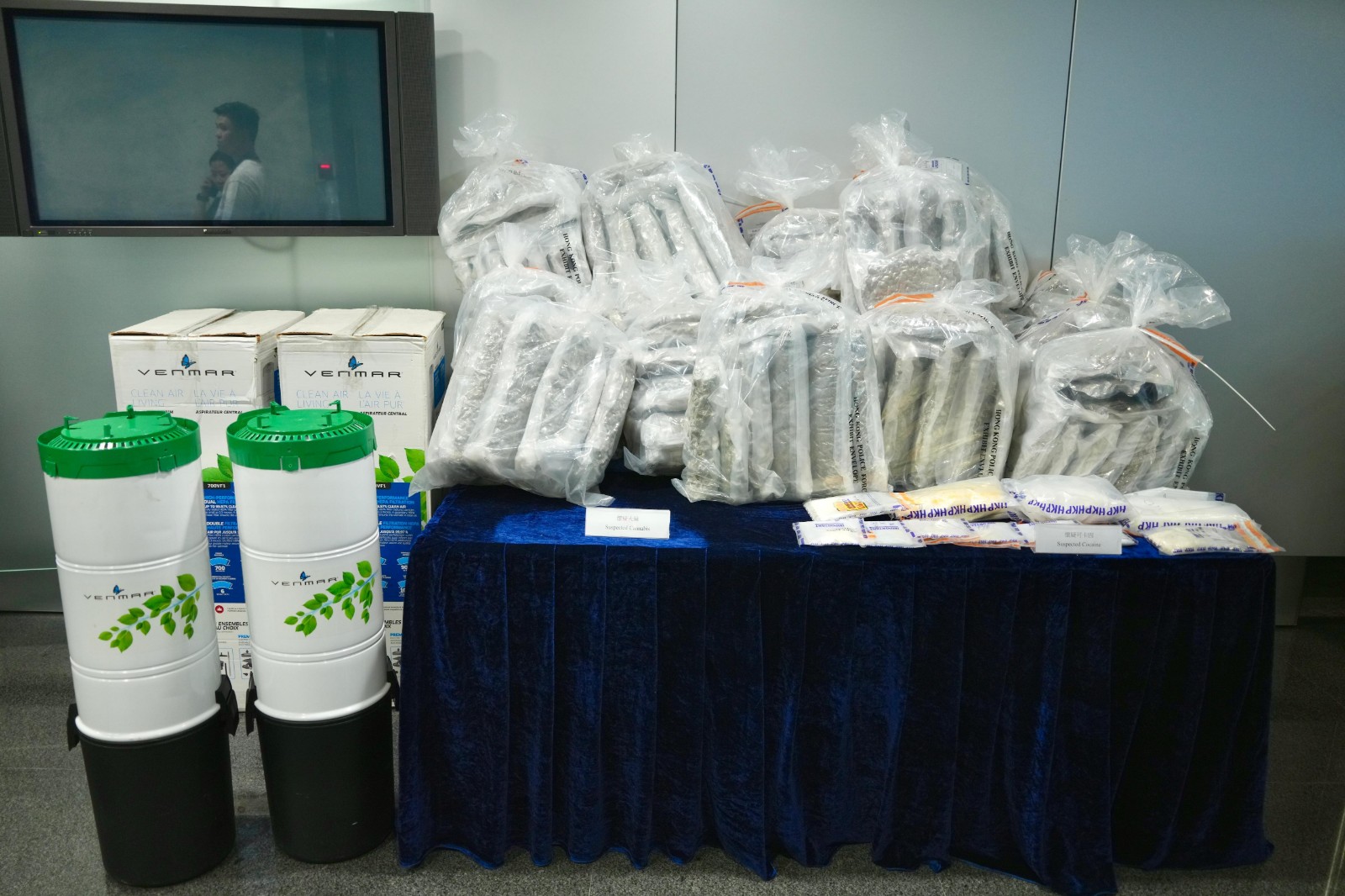 毒品調(diào)查科高級督察何灝庭今日(18日)表示,人員經(jīng)調(diào)查相信販毒集團將一大批大麻花由加拿大運到本港,報稱貨品為工業(yè)用吸塵機,遂展開監(jiān)控遞送行動。至前日(16日)下午,目標(biāo)貨物被送到錦田元岡新村。其後有兩名男子進行拆貨,抽出藏在吸塵機內(nèi)的懷疑大麻花。人員馬上將兩名男子拘捕,分別姓楊和姓劉(48歲和55歲),涉嫌「販運危險藥物」罪。經(jīng)點算後檢獲150包以真空包裝懷疑大麻花,共重102公斤。