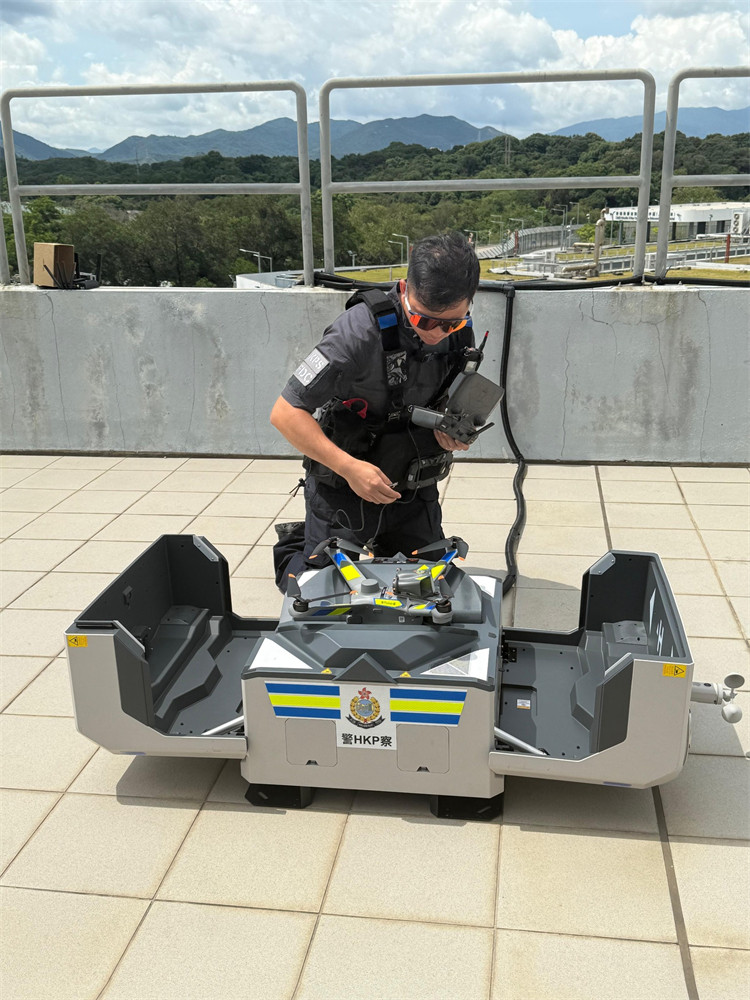邊界警區(qū)指揮官劉經(jīng)倫總警司今日(23日)率領(lǐng)邊界警區(qū)人員見證小型無人機(jī)啟航。邊界警區(qū)因涵蓋大量鄉(xiāng)村及山林地帶,傳統(tǒng)巡邏需時(shí)較長(zhǎng),使用無人機(jī)巡邏,時(shí)間可以由1小時(shí)縮短至約10至20分鐘,提升打擊罪案能力。而高空監(jiān)察有助偵察及防止爆竊、偷盜等犯罪活動(dòng),並能即時(shí)追蹤犯案者逃跑路線,支援地面警力部署,提高執(zhí)法成效。