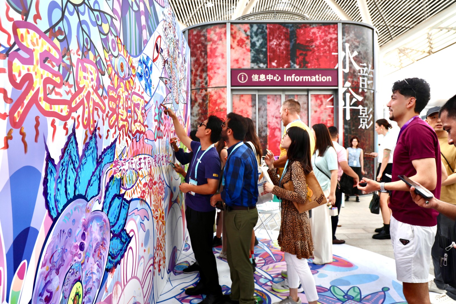 打卡互動區(qū)、全天開放的塗鴉共創(chuàng)牆、沉浸式藝術(shù)現(xiàn)場及定時上演的跨界演出,構(gòu)建了「可看、可玩、可體驗」的立體藝術(shù)場景?!赣^眾不僅是觀賞者,也是創(chuàng)作者和傳播者。他們在塗鴉牆上留下個性印記,用鏡頭記錄展覽瞬間,甚至跟隨舞者即興互動,這種高參與度正是『無界』理念的最佳詮釋。」策展方總結(jié)道。