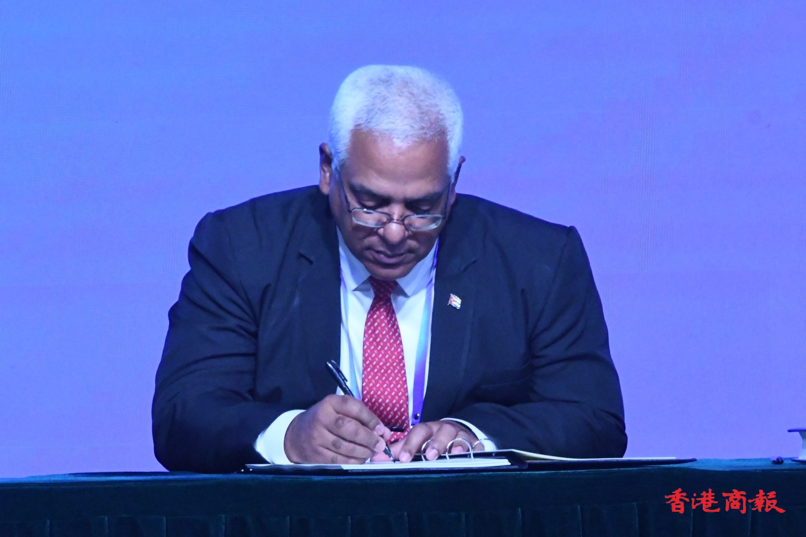 國際調(diào)解院公約簽署儀式今早(30日) 在灣仔君悅酒店舉行。(記者 馮瀚文攝)