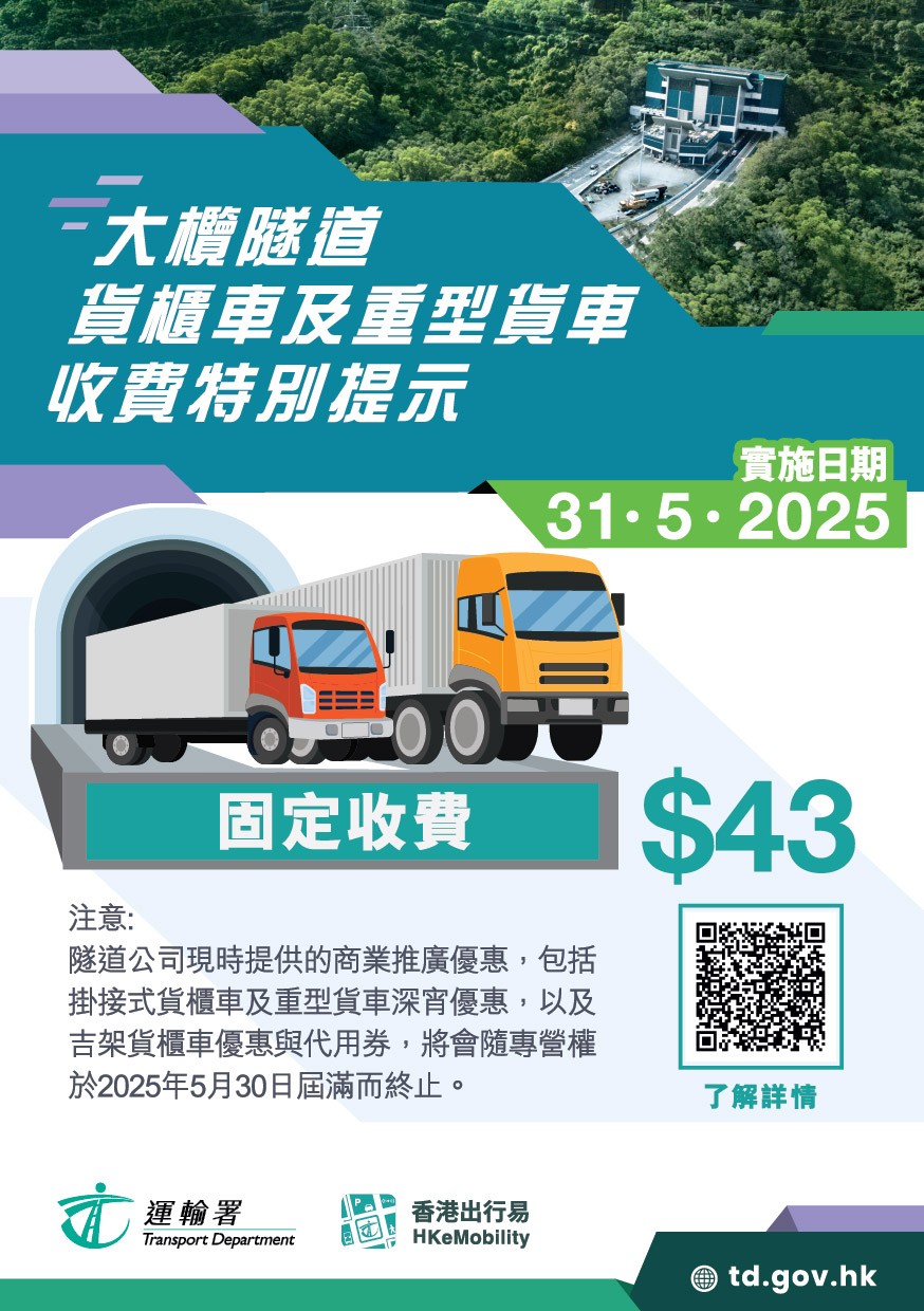 5·31起政府收回大欖隧道專營權(quán) 即時下調(diào)所有車種收費 運作大致暢順
