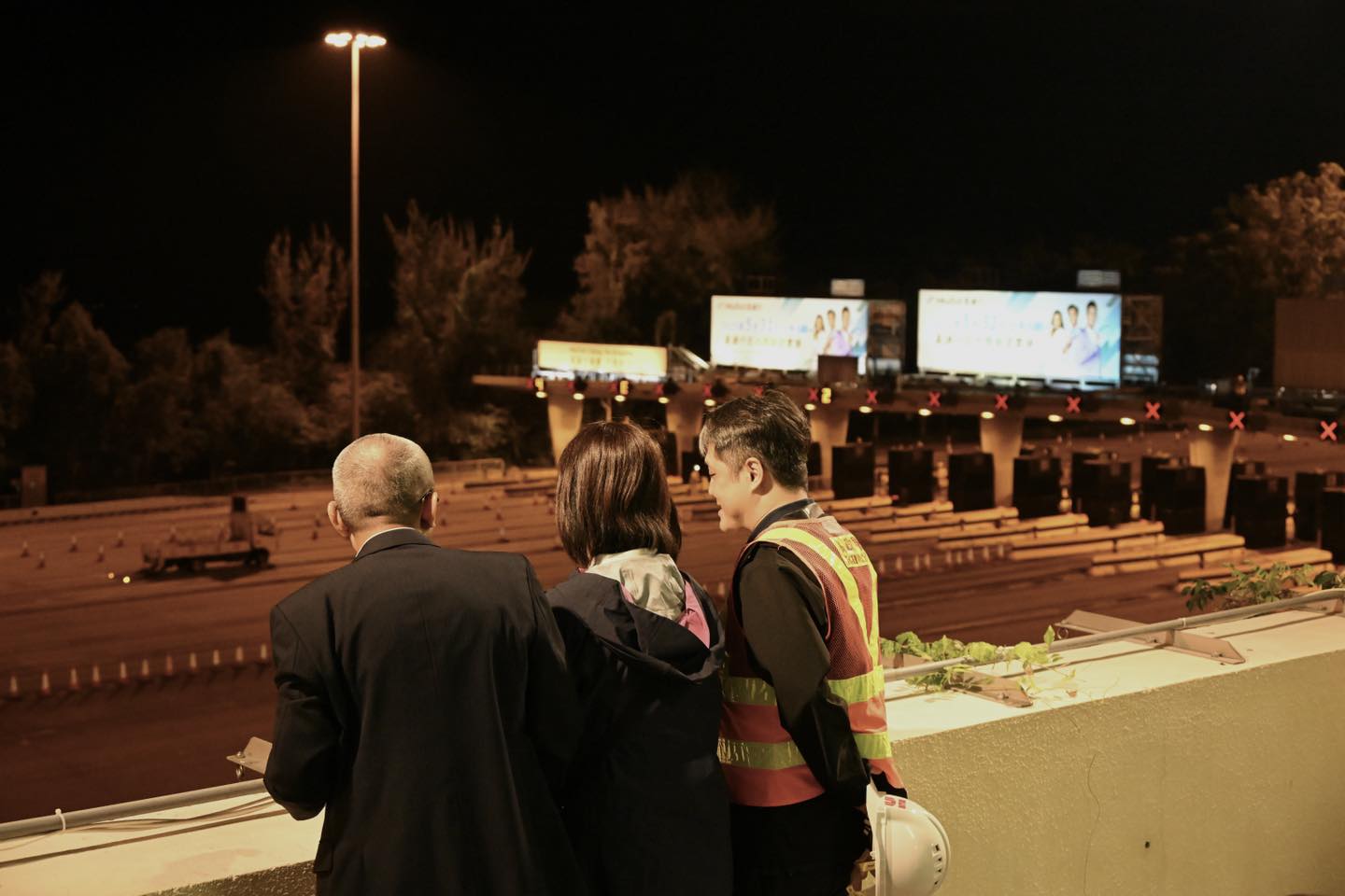 為確保大欖隧道實施「易通行」順利,運輸署署長李頌恩今日凌晨到隧道行政大樓視察,聽取營辦商管理層匯報隧道全線封閉期間的轉(zhuǎn)換工程,並到控制中心監(jiān)察實施易通行前的準(zhǔn)備工作。
