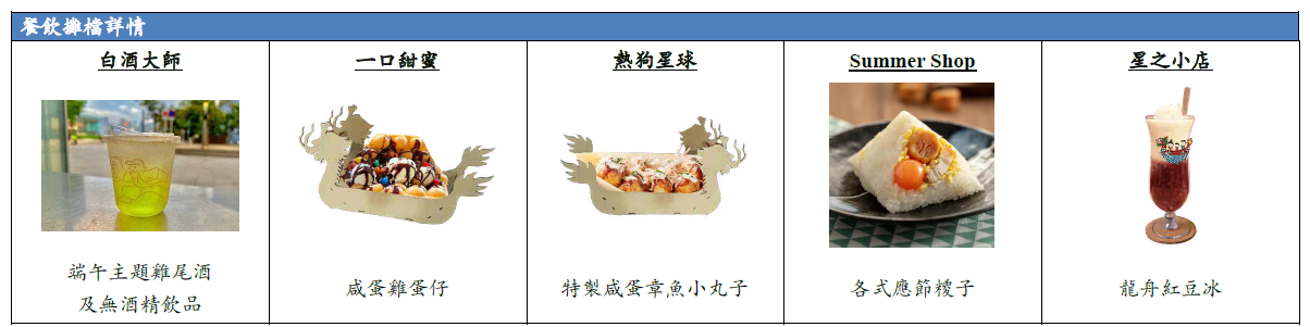 星光大道上的10個餐飲攤檔從今日起,連續(xù)9天推出龍舟主題美食,包括端午應(yīng)節(jié)糭、龍舟造型的豆沙餅和雪條,以糉子為靈感加入咸蛋的雞蛋仔及章魚小丸子,以及多款清涼消暑的特色飲品等。