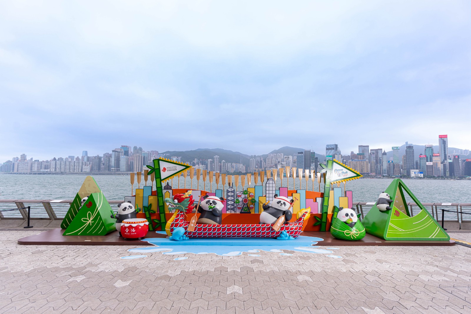 香港海洋公園超萌「Panda Friends」,包括大熊貓安安、可可、盈盈、樂樂、龍鳳胎寶寶加加及得得,即日起至6月8日,登陸星光大道三大打卡點,牠們以端午節(jié)主題造型驚喜亮相,加加和得得亦邀請市民旅客分別坐上「千秋君」或站於天星小輪旁,以維港為背景一起打卡留念,推廣本地特色。