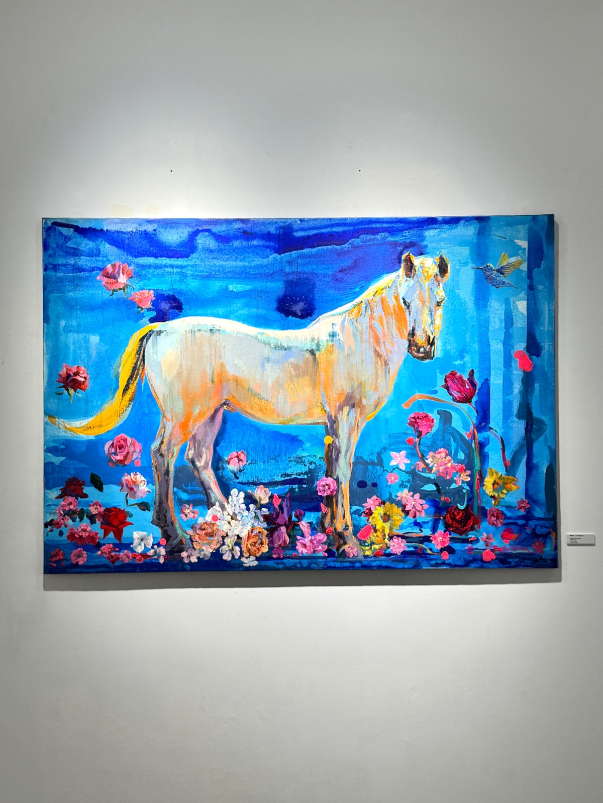 讀者有否試過(guò)在參觀展覽途中因太過(guò)投入,而忘記了時(shí)間的流逝?畫(huà)家廖井梅的個(gè)展「凝眸」,展示十多幅以駿馬為主題的畫(huà)作,她通過(guò)馬為意象探討時(shí)間流逝與精神意識(shí)的沉澱, 畫(huà)作充滿浪漫現(xiàn)實(shí)主義風(fēng)格,引領(lǐng)觀眾踏入一場(chǎng)跨越物理時(shí)間,定神細(xì)味的觀展旅程。