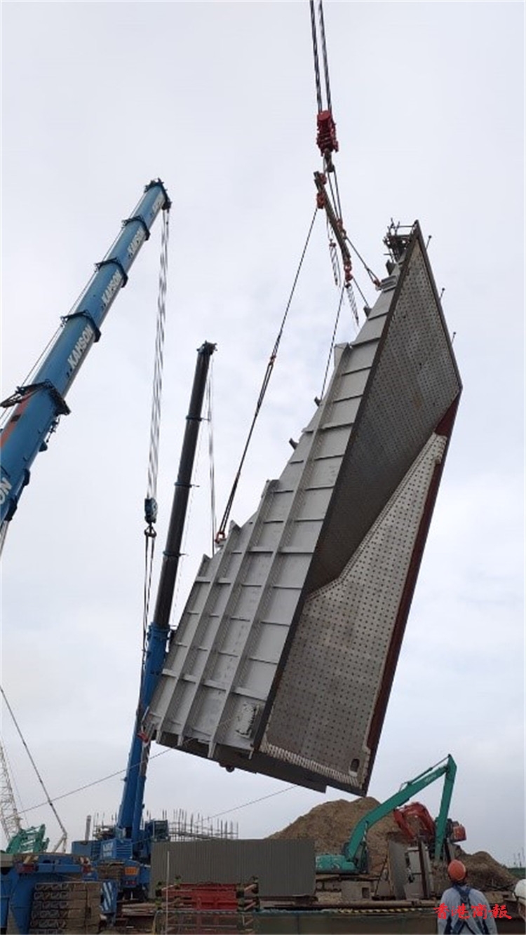 工程師樓慧妍(Nicole)的「代表作」是在南丫發(fā)電廠內(nèi)的重型吊運,圖為吊運餘熱鍋爐。(港燈提供圖片)