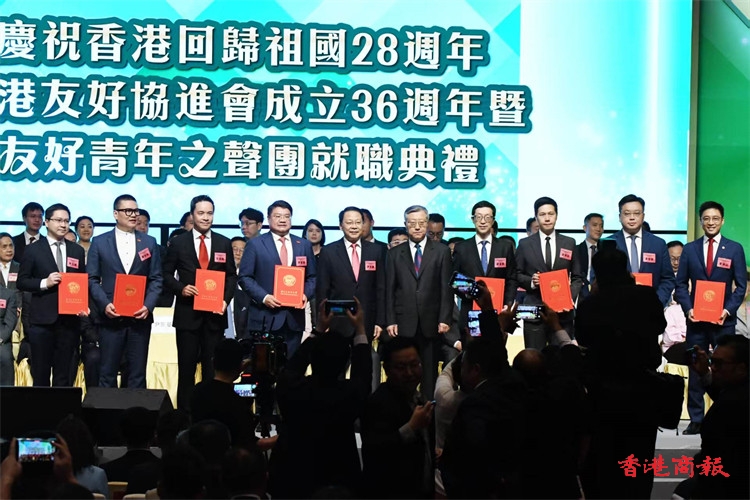 頂圖圖說(shuō):慶祝香港回歸祖國(guó)28周年、 香港友好協(xié)進(jìn)會(huì)成立36周年暨友好青年之聲團(tuán)就職典禮今晚舉行。