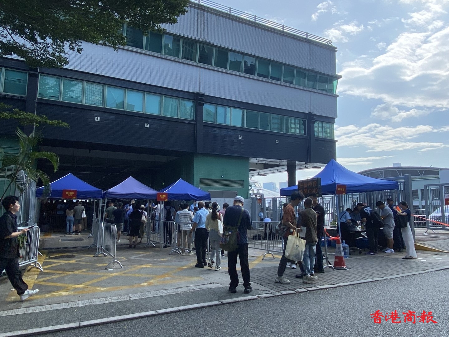 今早7時已有市民到中環(huán)1號碼頭排隊等候乘坐接駁船。(李銘欣 攝)
