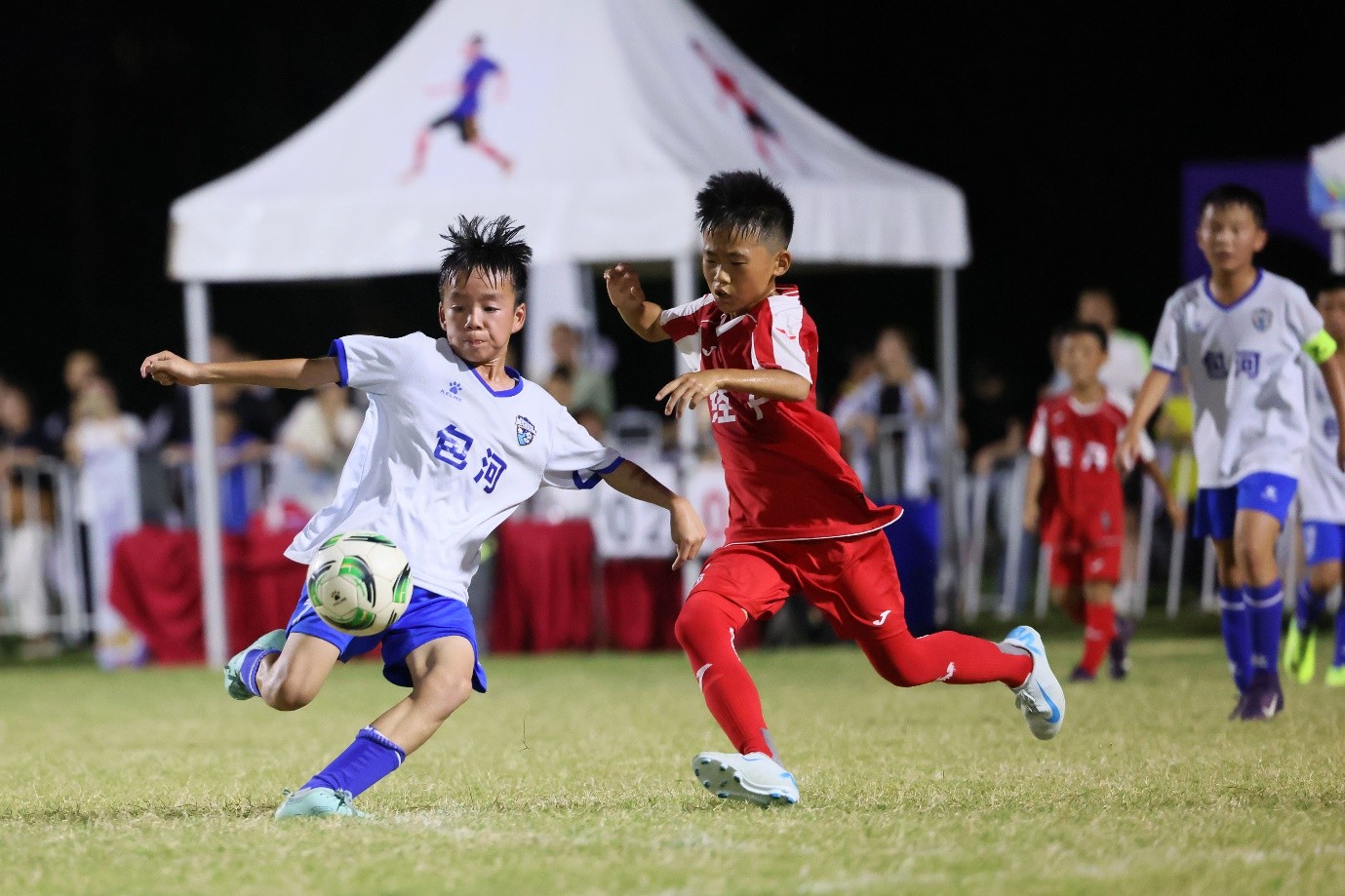自7月7日開(kāi)賽以來(lái),男女兩個(gè)組別共24支隊(duì)伍(各12支)集結(jié)賽場(chǎng)。面對(duì)多變的天氣,小隊(duì)員們從未退縮:大雨傾盆時(shí),他們?cè)谀酀糁袚寯鄠髑?,泥水與汗水交織卻眼神堅(jiān)定;烈日當(dāng)空時(shí),他們頂著高溫衝刺射門(mén),濕透的球衣見(jiàn)證著不懈的堅(jiān)持。這群10歲左右的少年,用每一次奔跑、每一次撲救,將對(duì)足球的熱愛(ài)融入賽場(chǎng),在球迷的助威中詮釋著「永不放棄」的體育精神。