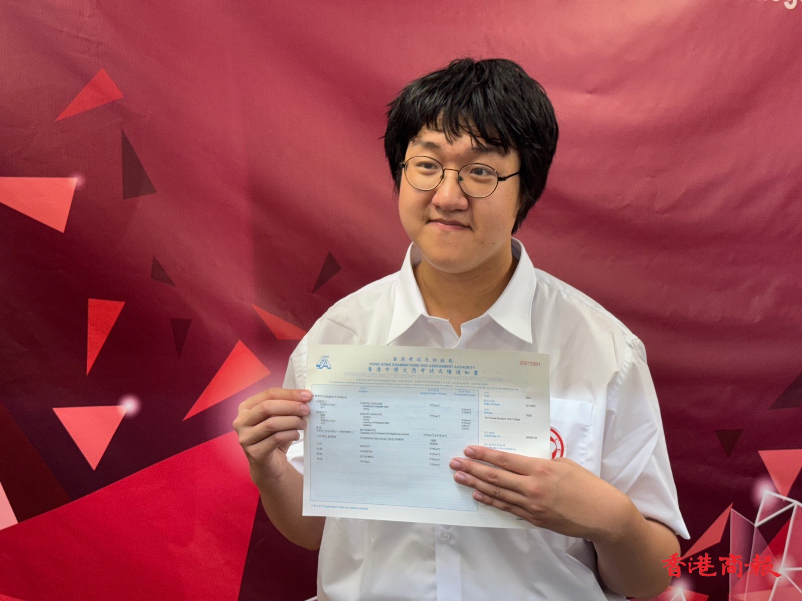 中國婦女會中學(xué)男生王海博考獲8科5星星,他在中英數(shù)3科、數(shù)學(xué)科延伸部分(俗稱M1及M2)、以及另外 4 科選修科都悉數(shù)獲得5**成績。