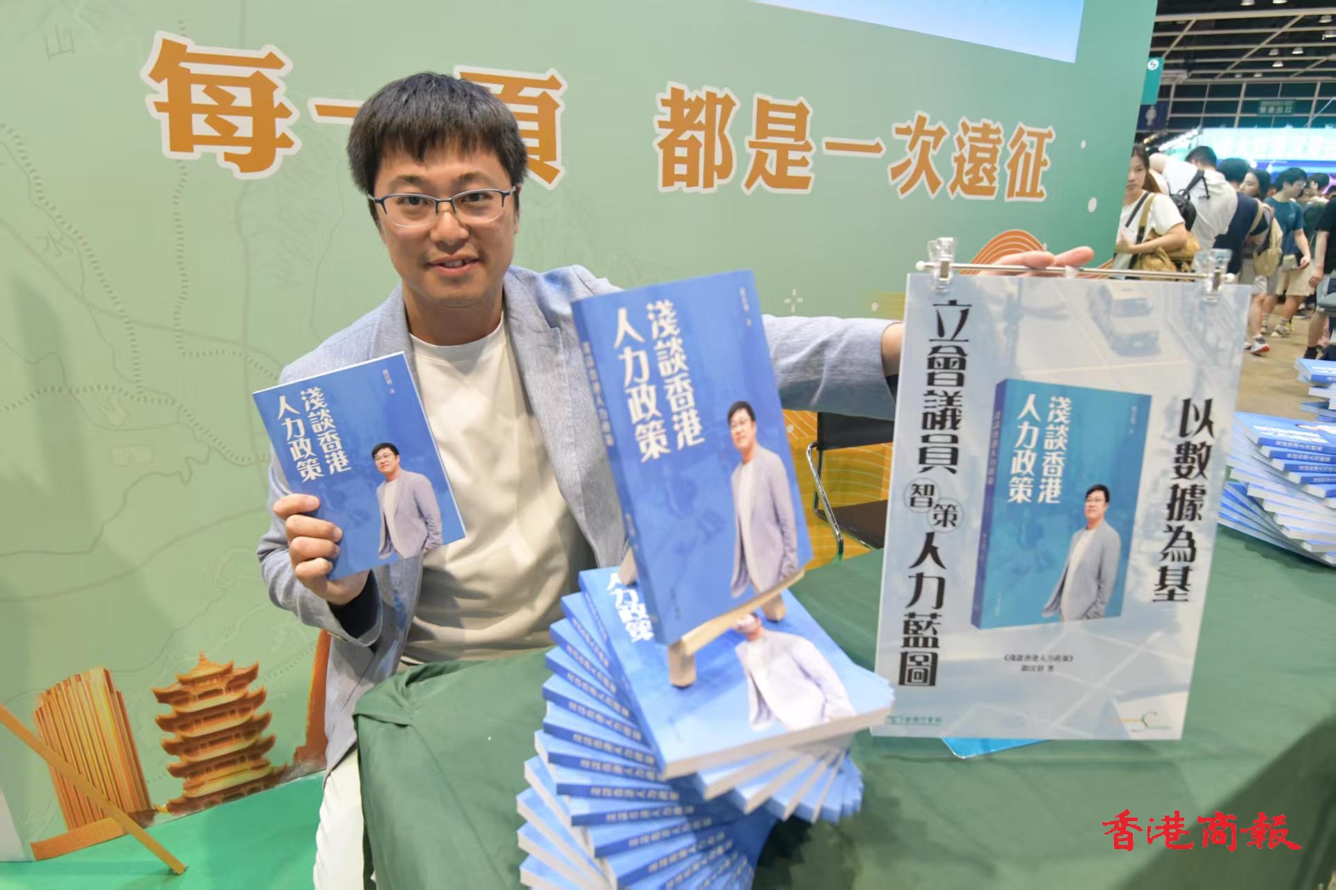 民建聯(lián)立法會(huì)議員顏汶羽在場(chǎng)為其著作《淺談香港人力政策》舉行簽名會(huì),期間與讀者合照。他向本報(bào)記者表示,今次用了大半年時(shí)間撰寫著作,他本身在立法會(huì)和民建聯(lián)負(fù)責(zé)勞工事務(wù),加上他由大學(xué)讀書,以至攻讀博士學(xué)位,一直研究人力政策,因此將過(guò)去十多年的研究成果,用一個(gè)較簡(jiǎn)單和清晰的方法作講解,介紹一些在勞資市場(chǎng)的矛盾。