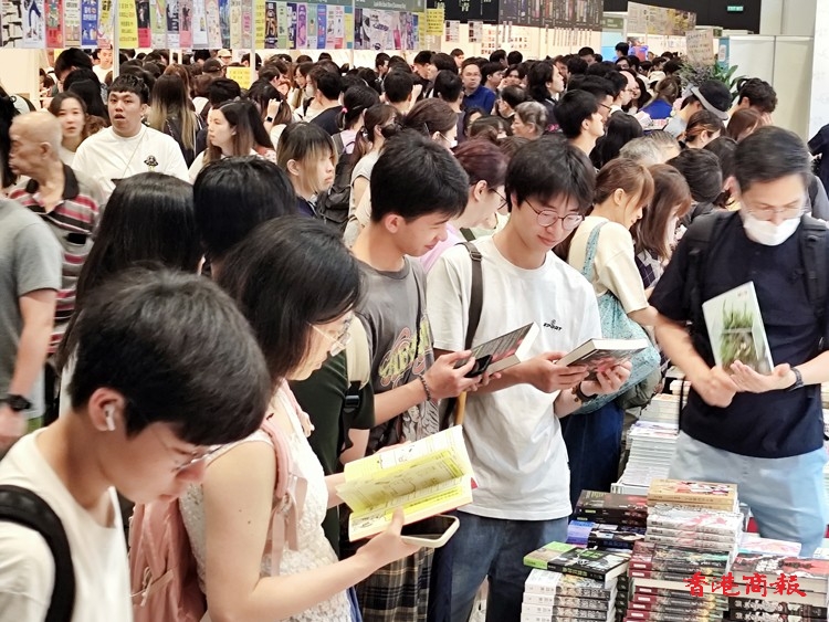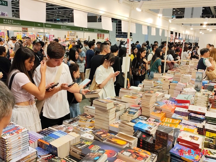 香港書展今日(19日)踏入第四天展期,適逢周末,吸引不少書迷帶備行李箱和環(huán)保購(gòu)物袋入場(chǎng)掃貨,滿載而歸。有參展商預(yù)料,今年生意額可望錄得一成增長(zhǎng),另有參展商擔(dān)心颱風(fēng)襲港影響銷情,坦言今年若有去年的生意額已算不錯(cuò)。