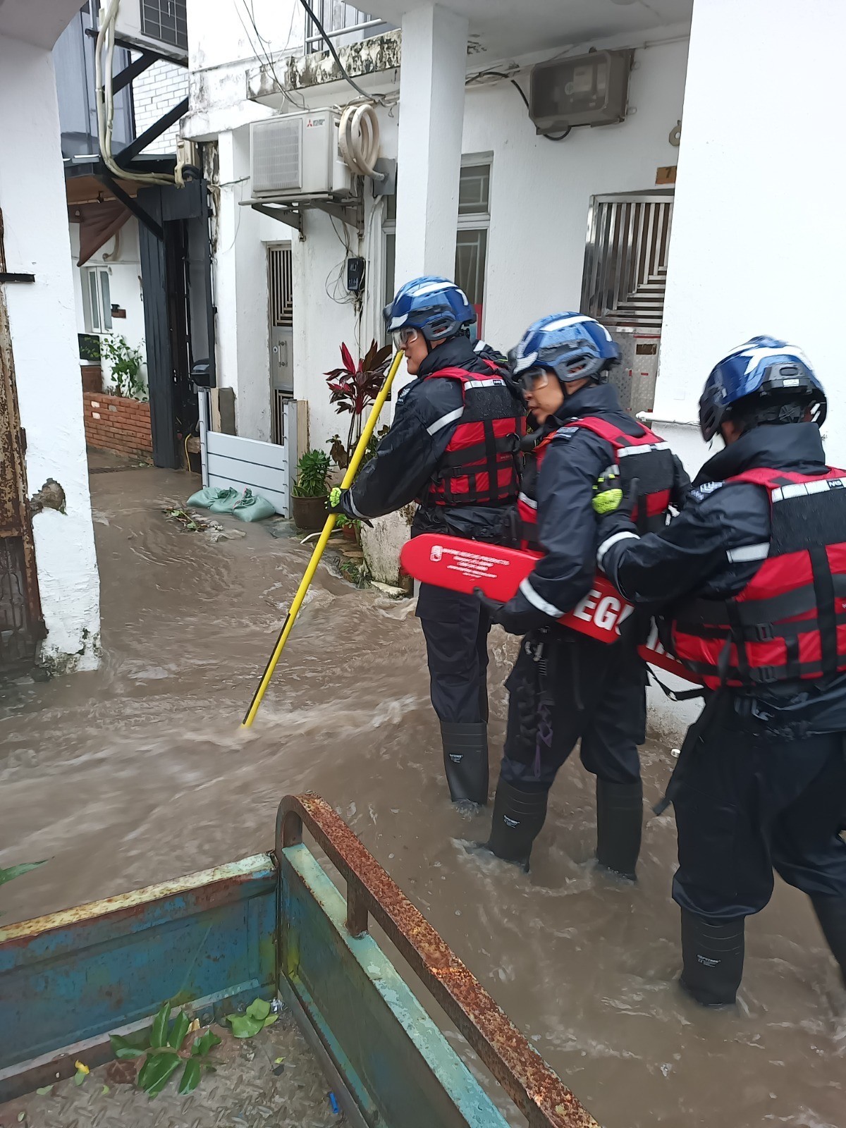 民安隊表示,在颶風(fēng)信號懸掛期間,民安隊派員分別在大澳、鯉魚門、沙頭角及荃灣,處理多宗民居水浸和倒樹事件。隊員們?nèi)σ愿埃瑓f(xié)助居民排水和搶險,確保社區(qū)的安全和穩(wěn)定。