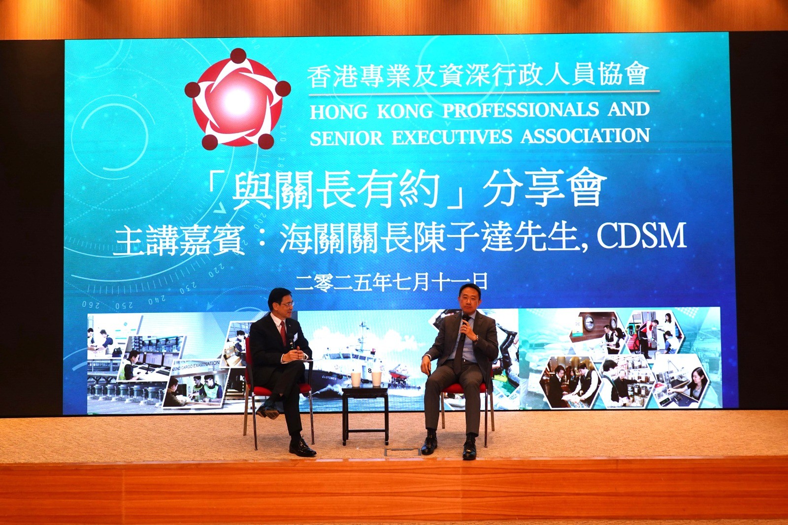 海關(guān)表示,海關(guān)關(guān)長陳子達(dá)早前出席香港專業(yè)及資深行政人員協(xié)會舉辦的「與關(guān)長有約」分享會,與會員分享海關(guān)多元化工作,以及在環(huán)球最新格局下,如何為國家和香港做好「把關(guān)者」角色,守護(hù)國家南大門,促進(jìn)香港繁榮。