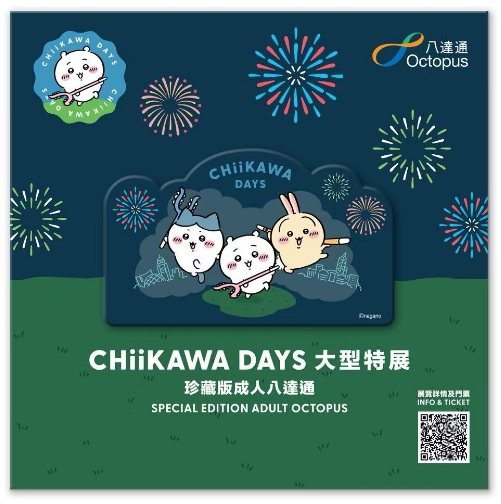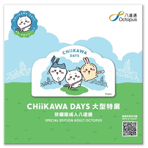 「CHIIKAWA DAYS 珍藏版八達(dá)通」共有兩款成人版,以Chiikawa和他的好友小八及兔兔為主題,手持討伐棒,背景配合香港獨(dú)有天際線,展現(xiàn)香港日與夜不同面貌。