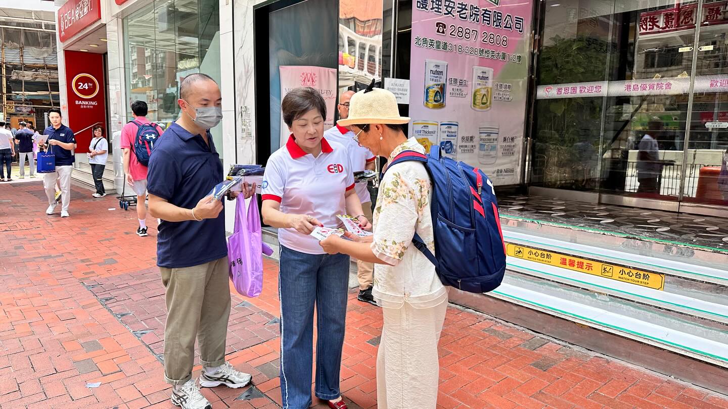 東區(qū)警區(qū)人員昨日(23日)聯(lián)同港島交通部道路安全組、東區(qū)道路安全運(yùn)動(dòng)宣傳委員會(huì)委員,到東區(qū)交通黑點(diǎn)英皇道與長(zhǎng)康街交界一帶派發(fā)道路安全宣傳單張及小禮品。