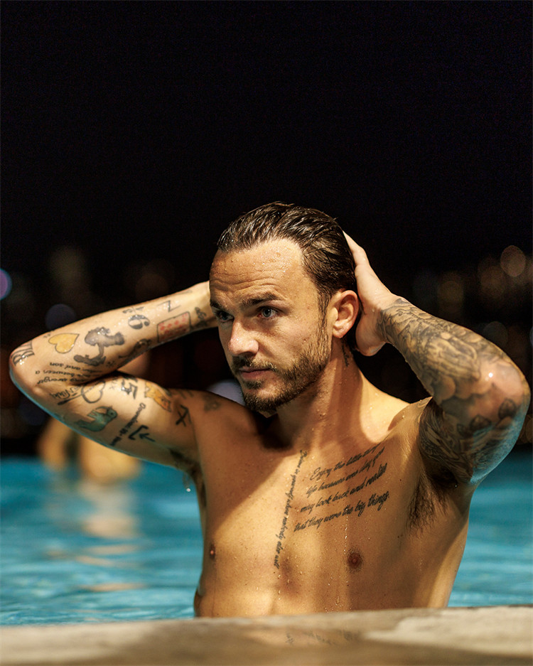 占士麥迪臣、蘇蘭基都到酒店泳池游水消暑降溫。