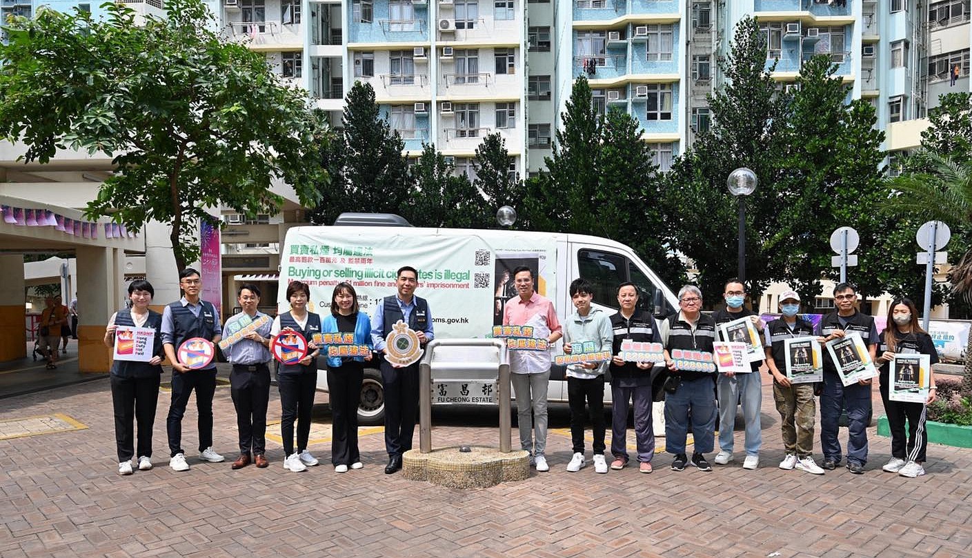 海關(guān)前日(28日)聯(lián)同立法會(huì)議員梁文廣、深水埗區(qū)區(qū)議員、衞生署控?zé)熅妻k公室及房屋署在深水埗富昌邨進(jìn)行聯(lián)合反私煙宣傳活動(dòng)。
