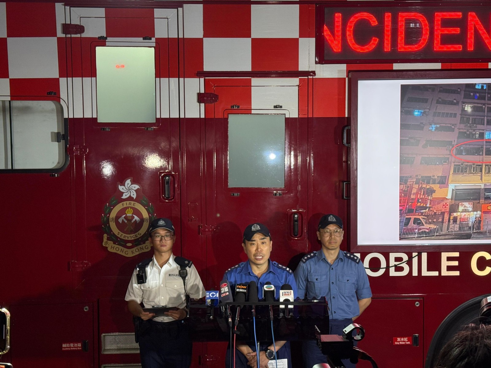 消防處高級消防隊長關(guān)耀基今日(8月1日)凌晨在記者會中展示火場平面圖交代案情,指出昨晚11時13分消防接獲多個報案,指旺角洗衣街111至113號建煌華廈發(fā)生火警,消防約4分鐘趕到現(xiàn)場,動員14輛消防車、11輛救護車、86名消防員及救護員,火警單位在大廈3樓,當(dāng)時一名女子在窗邊求助,消防員馬上動用油壓升降臺將她救出送院。
