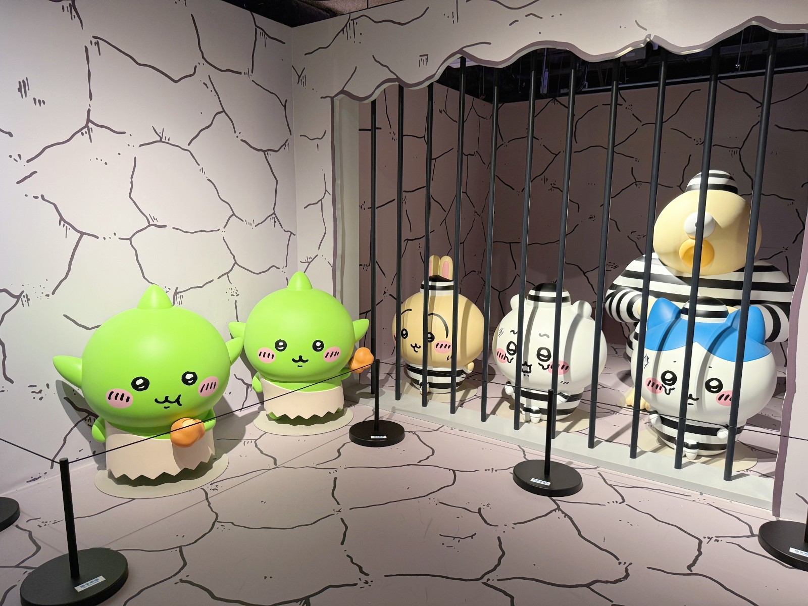 展區(qū)(二)「超巨大食物之森空中樂(lè)園」位於商場(chǎng)6樓雕塑公園,參觀者恍如走進(jìn)巨大食物之森,包括巨大的蛋包飯及布甸等,將吉伊卡哇世界中的美食盡收眼底!地下戶(hù)外的展區(qū)(三)「大型討伐!名場(chǎng)面造型集合」匯聚許多特別造型以及人氣名場(chǎng)面的重現(xiàn),其中最矚目的是三位主角手持「討伐棒」造型、9米高巨型充氣雕塑,並且能看到復(fù)活蛋、雨衣、薑餅等節(jié)日形象,以及動(dòng)畫(huà)版中「睡衣派對(duì)」組合造型,窺探吉伊卡哇多變的形象。