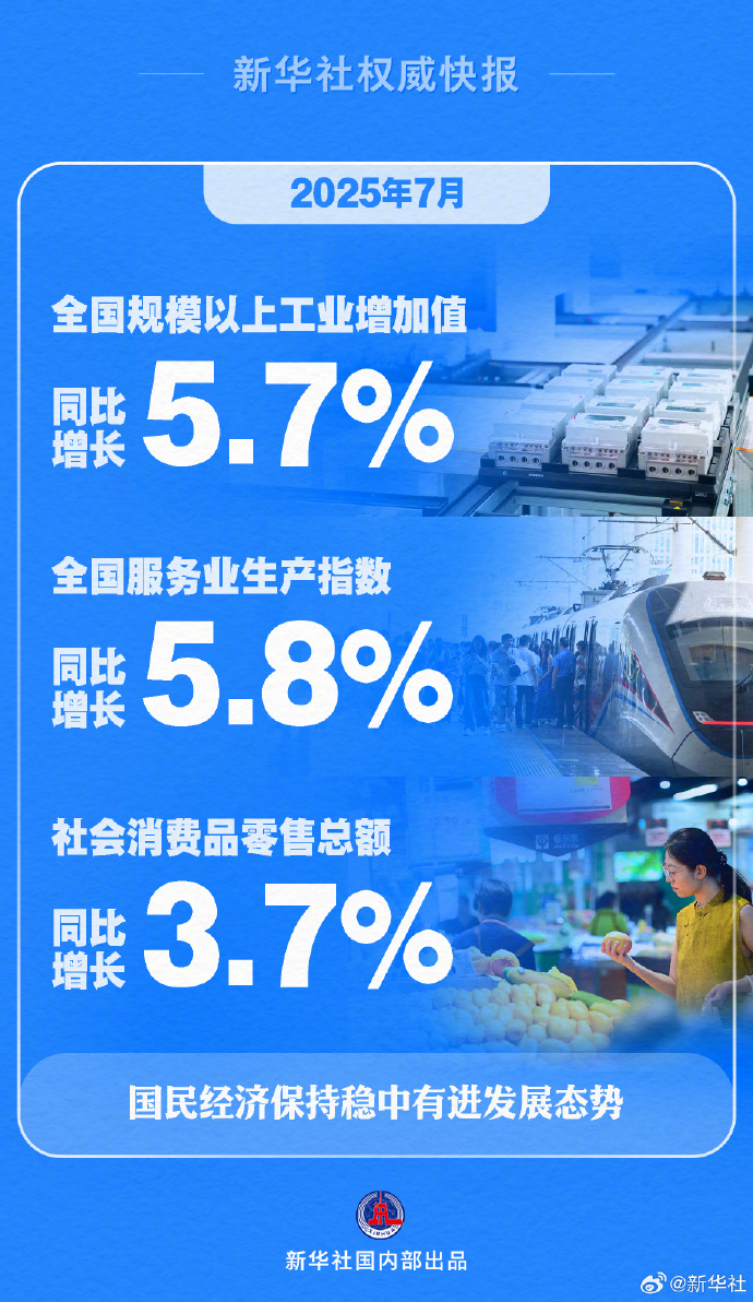 國(guó)家統(tǒng)計(jì)局:7月份國(guó)民經(jīng)濟(jì)保持穩(wěn)中有進(jìn)發(fā)展態(tài)勢(shì)