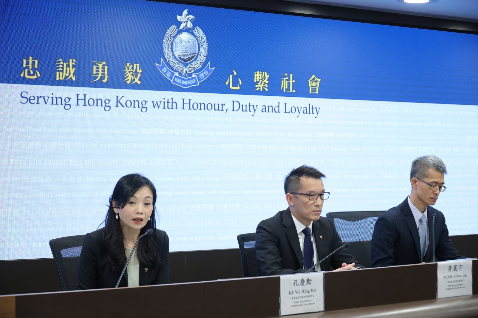 左起:警方商業(yè)罪案調查科高級警司孔慶勳、警方商業(yè)罪案調查科總警司黃震宇、海關貿易管制處商品說明調查科首席貿易管制主任郭家駒。