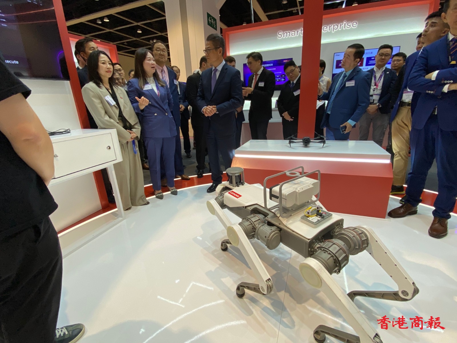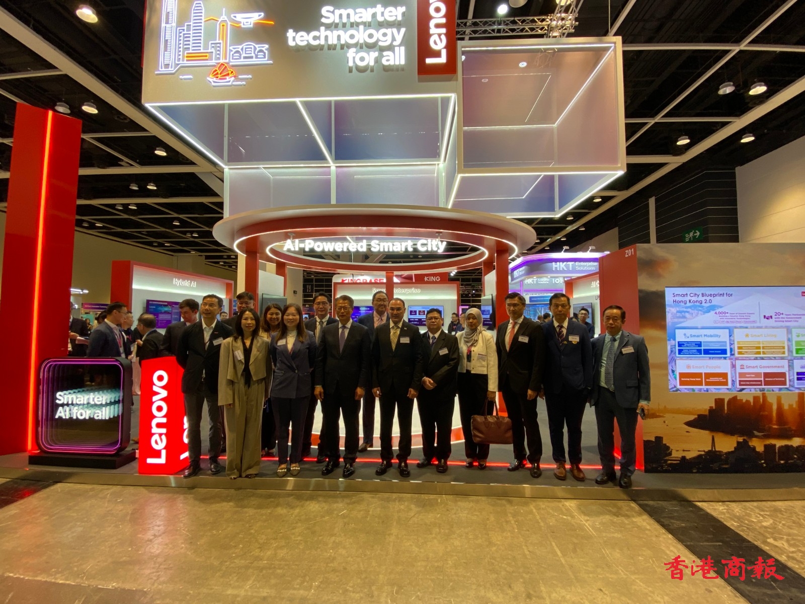 開幕禮後陳茂波聯同多位「一帶一路」共建國家的駐港領事,參觀了聯想、華為、聯通等多家企業(yè)的展區(qū)。