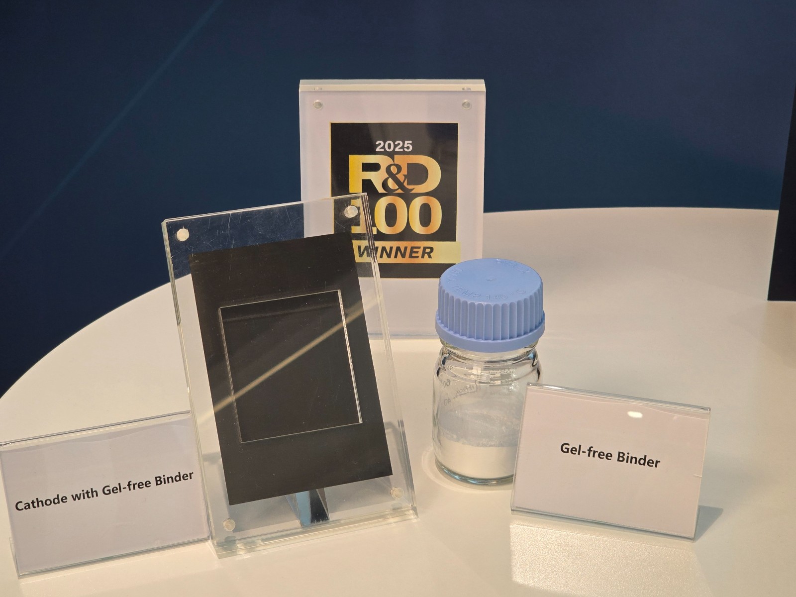 最後,記者來(lái)到標(biāo)注多功能抗凝膠黏結(jié)劑的展臺(tái)旁,NAMI副研究發(fā)展總監(jiān)朱勇博士表示,該項(xiàng)目是NAMI與納電(廣東)材料科技有限公司合作開(kāi)發(fā),該P(yáng)VDF黏結(jié)劑具備優(yōu)異漿料穩(wěn)定性與黏合強(qiáng)度,革新高鎳正極鋰電池的製造技術(shù),可提升電池性能與壽命,助力新能源發(fā)展。項(xiàng)目榮獲2025全球百大科技研發(fā)獎(jiǎng)。
