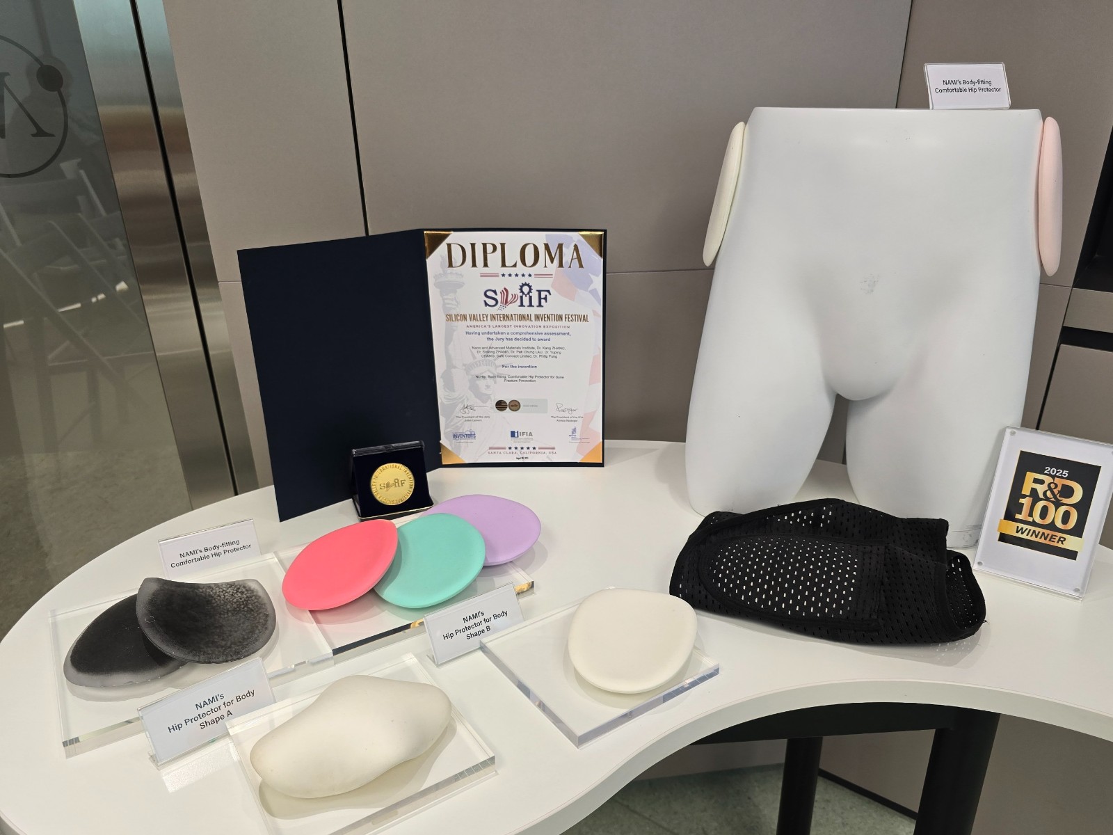 是次分享會(huì)由各項(xiàng)目合作夥伴代表及研發(fā)團(tuán)隊(duì)親自介紹其獲獎(jiǎng)技術(shù)。其中,NuHip是全球首款可於淋浴時(shí)佩戴的髖部保護(hù)器。據(jù)康概念有限公司創(chuàng)辦人及行政總監(jiān)馮炳全博士介紹,它採(cǎi)用仿生雙相網(wǎng)絡(luò)及形狀記憶材料,提供貼身舒適的防衝擊保護(hù),有效預(yù)防長(zhǎng)者因跌倒導(dǎo)致的髖部骨折,提升居家安全與生活質(zhì)素。該項(xiàng)目榮獲2025矽谷國(guó)際發(fā)明節(jié)金獎(jiǎng)、2025全球百大科技研發(fā)獎(jiǎng)(R&D100 Awards)以及2025日內(nèi)瓦國(guó)際發(fā)明展評(píng)判特別嘉許金牌。