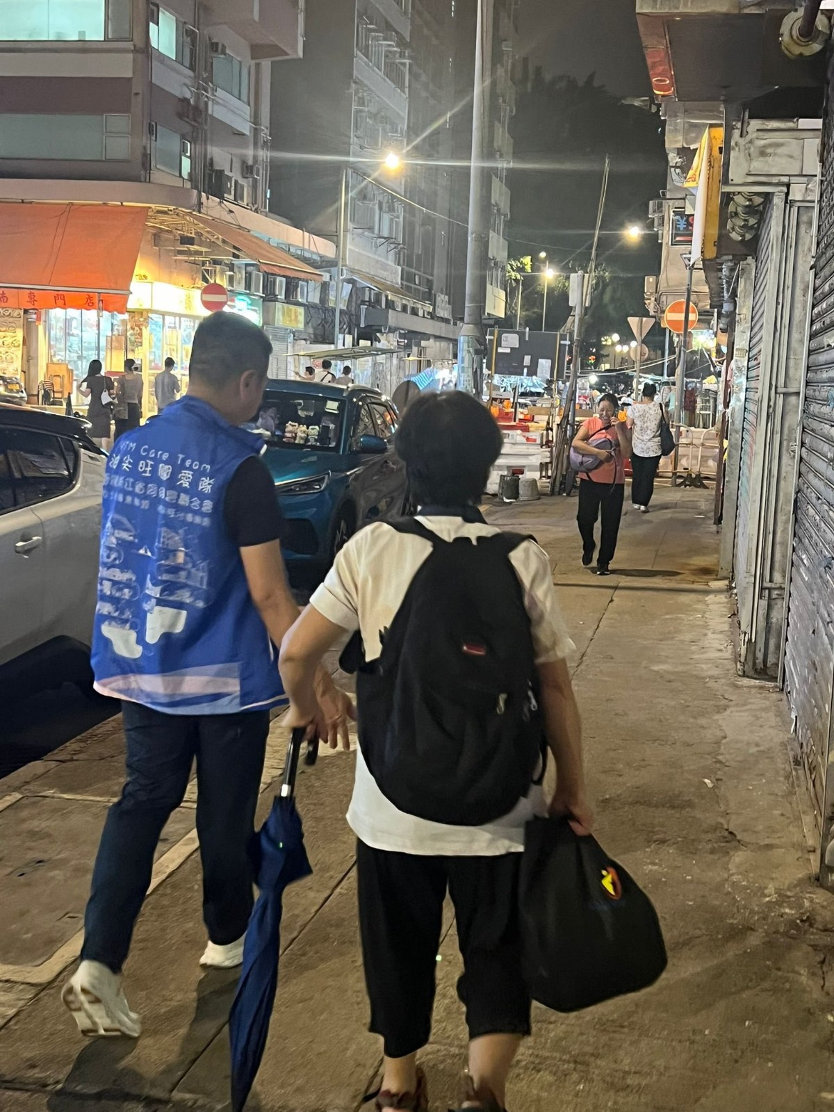 關(guān)愛隊隊員亦陪居民到庇護中心,並留守中心陪伴開解;其他隊員去買毛巾予居民抹身,又帶他們?nèi)ハ词珠g。