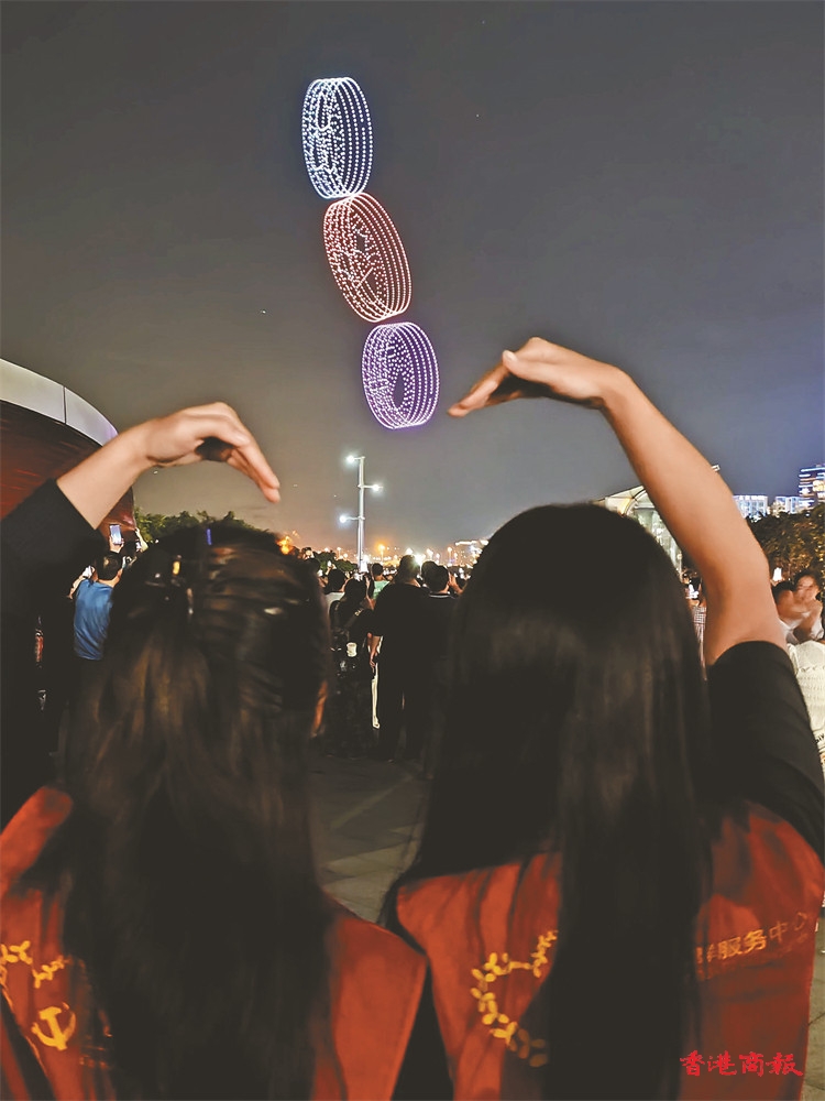 雙會場以無人機組成的「新時代走在前列,新征程勇當(dāng)尖兵」字樣圓滿收官。