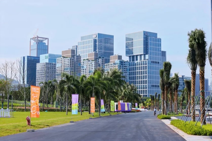 公園亦是漫社交空間,雙界河服務(wù)驛站山海連城,位於雙界河河口段南岸,縱享前海灣無遮擋海景,建築面積1000平方米,提供咖啡、休憩、衛(wèi)生間等功能,福??Х龋ㄉ钲谄炫灥辏┞?lián)手FRONTIER前線運動,以新東方美學(xué)為基底,呈現(xiàn)共享、活力、健康、藝術(shù)的濱海休閒空間,現(xiàn)已快閃先睹,9月30日全面呈現(xiàn)。在前海灣石公園,文化不再有邊界。南區(qū),以觀海書屋、藝術(shù)展廳、森林藝?yán)?、?chuàng)意市集,融合跨界文化融合和碰撞、自然藝術(shù)文化戶外體驗。北區(qū),以露營之驛、媽咪咖啡、森林餐廳,打造生態(tài)開放式聚集地,將日常內(nèi)容與自然空間深度融合??缃缥幕舱駡?自然生活社交場,將於2025年底呈現(xiàn)。前海激浪用前沿科技與先鋒藝術(shù)重新定義「城市會客廳」,位於前海石公園(桂灣段)最核心位置,連接深港交易廣場,面朝星空草坪與大海。建築面積約4000平方米,地上四層,高24米,以「五彩石·未來艙」為設(shè)計理念,設(shè)有前海城市展示艙、未來生活體驗艙、機(jī)器人咖啡廳等功能,將於2026年建成開放。