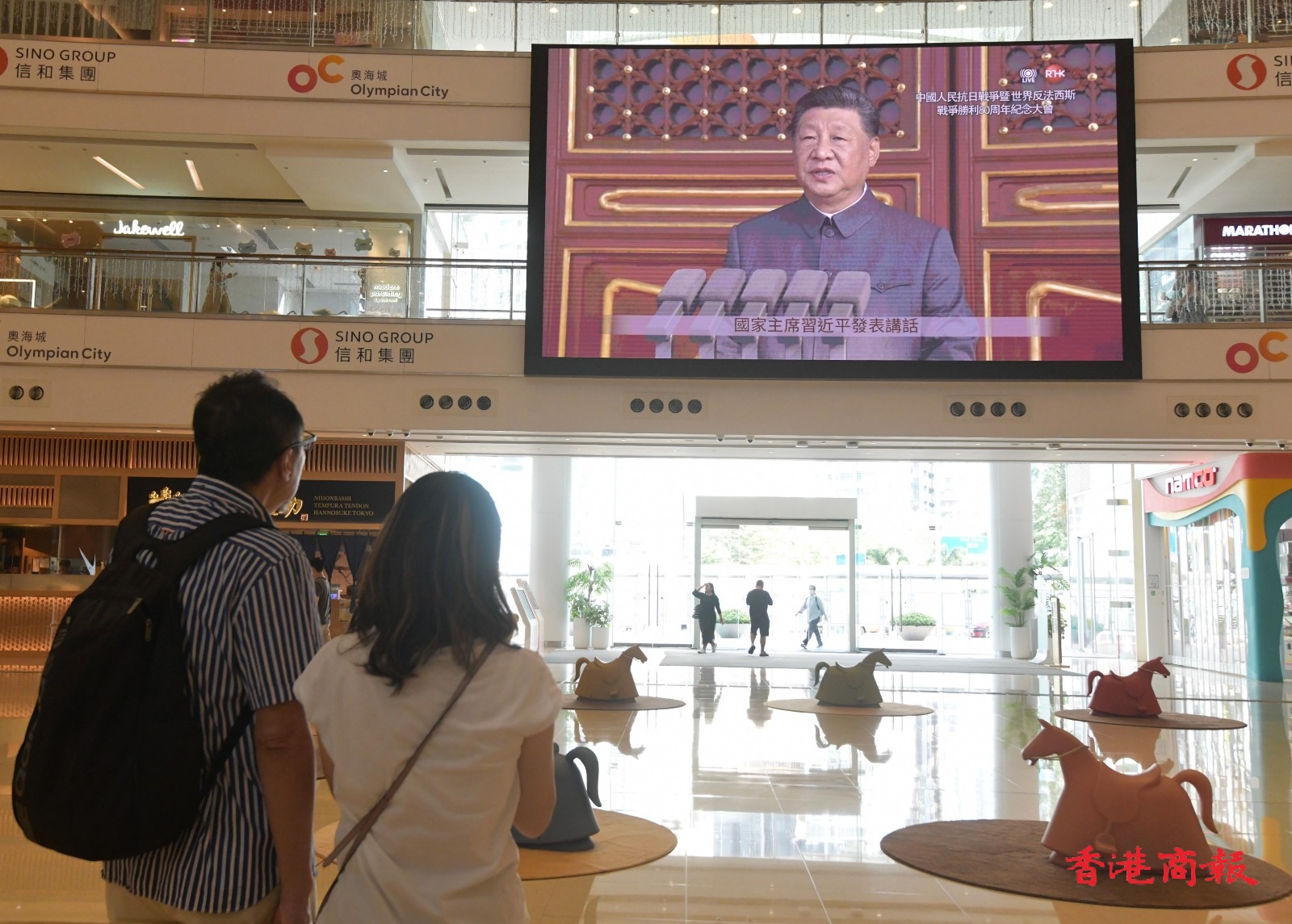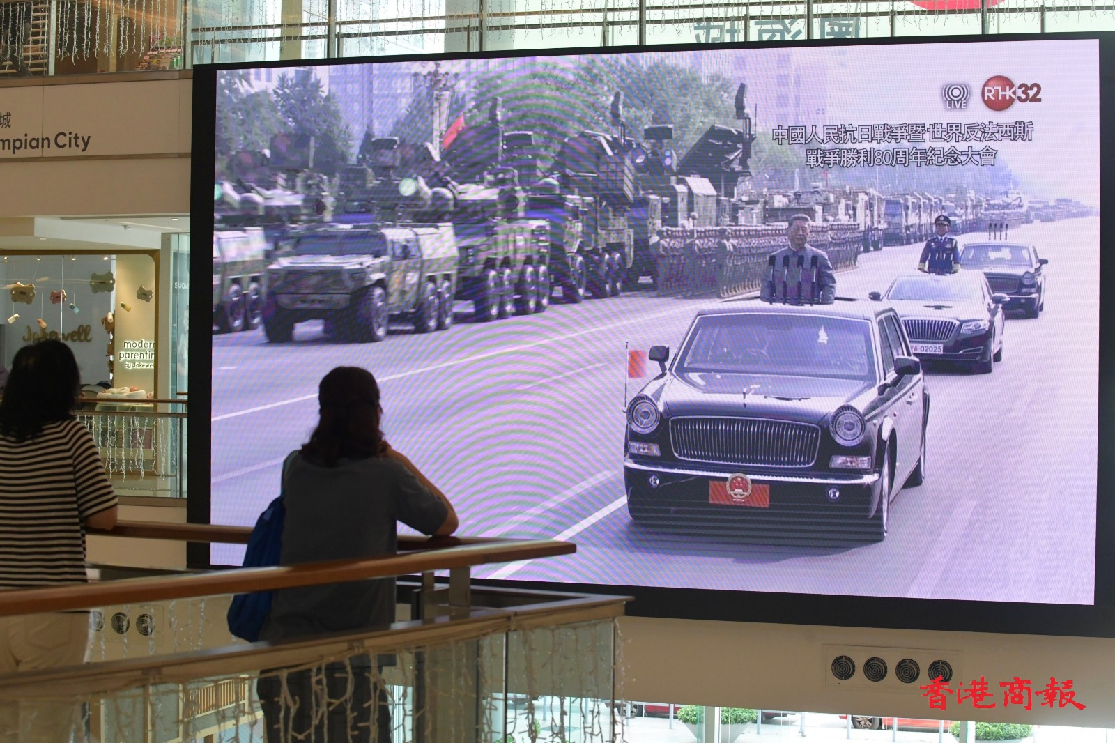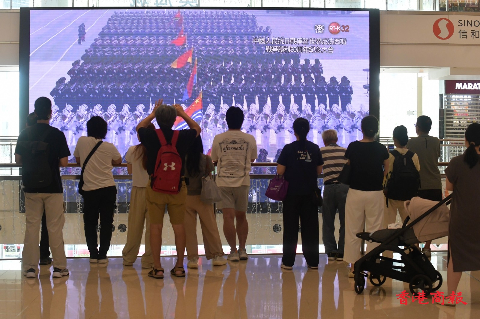 圖集 | 【抗戰(zhàn)勝利80周年】香港市民在商場觀看九三盛大閱兵直播
