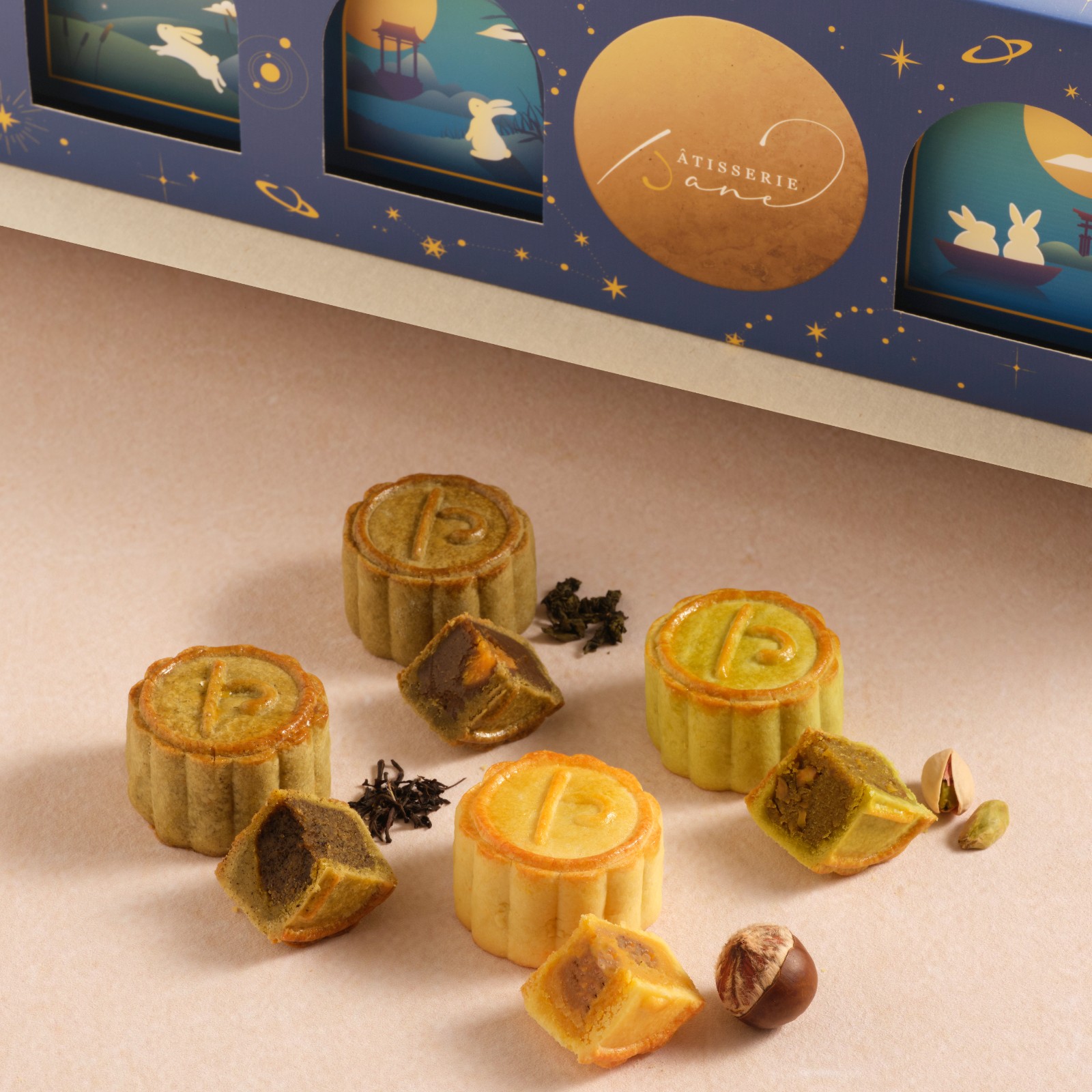 如果吃膩了傳統(tǒng)月餅,想找坊間少見口味的月餅,推介本地甜品店P(guān)atisserie Jane的全新堅果茶饌奶黃月餅禮盒(HK$168 早鳥優(yōu)惠價HK$148)。店舖堅持香港手工製作,今年巧妙重塑經(jīng)典風(fēng)味,一盒四件的禮盒包括開心果奶黃月餅、栗子奶黃月餅、伯爵茶奶黃月餅及凍頂烏龍奶黃月餅。以香濃奶黃月餅為基底,外層酥脆的特製曲奇皮包裹香濃幼滑的金沙奶黃餡,並分別配搭細膩濃郁的開心果蓉、細膩綿滑的栗子蓉、清幽淡雅的伯爵茶及醇厚帶烘焙香的凍頂烏龍茶內(nèi)餡,每個口味均層次感十足。其中栗子奶黃月餅,亦香甜綿密的粒粒栗子豆蓉配搭金沙奶黃餡,秋意滿滿。