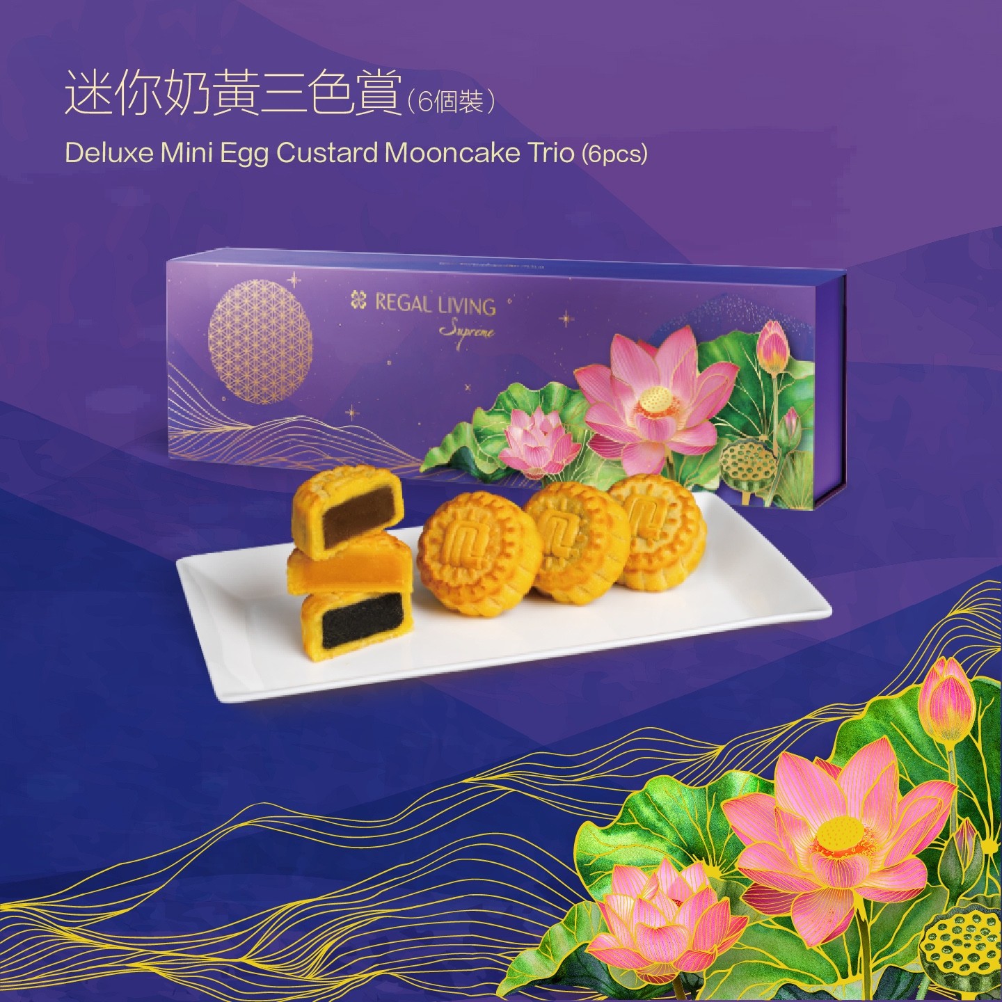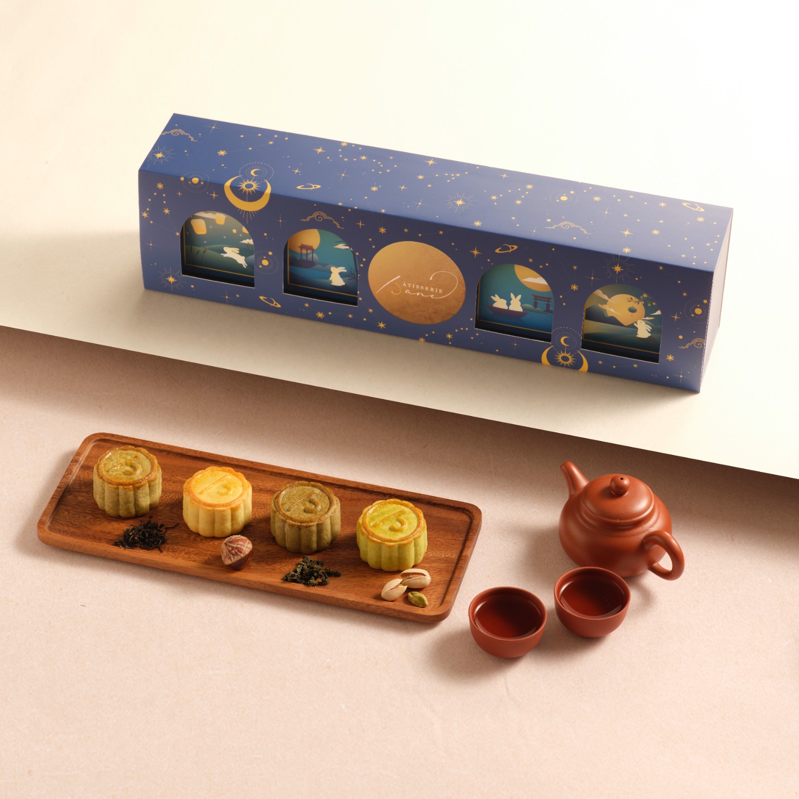 新推出「迷你奶黃三色賞」(會員價HK$268 原價HK$408),除迷你至尊奶黃月餅,還有新研製的迷你黑芝麻奶黃月餅及迷你焦糖海鹽咖啡奶黃月餅。三款月餅均以法國牛油及上等鹹蛋黃調(diào)製,餡料細膩香濃,餘韻悠長。迷你黑芝麻奶黃月餅口感濃郁,香氣四溢;迷你焦糖海鹽咖啡奶黃巧妙融合焦糖的甜與海鹽的微鹹,層次分明。「經(jīng)典雙輝月餅」(會員價HK$368 原價HK$508)包含雙黃金黃蓮蓉月餅與陳皮豆沙月餅各兩個,前者採用頂級黃蓮蓉,口感醇厚濃郁;後者則以幼滑紅豆沙融合珍貴遠年陳皮,香甜中帶一抹回甘?!鸽p黃白蓮蓉月餅」選用絲滑白蓮蓉搭配鹹香油潤的蛋黃,齒頰間散發(fā)蓮子的清幽香氣,演繹懷舊鹹甜滋味。