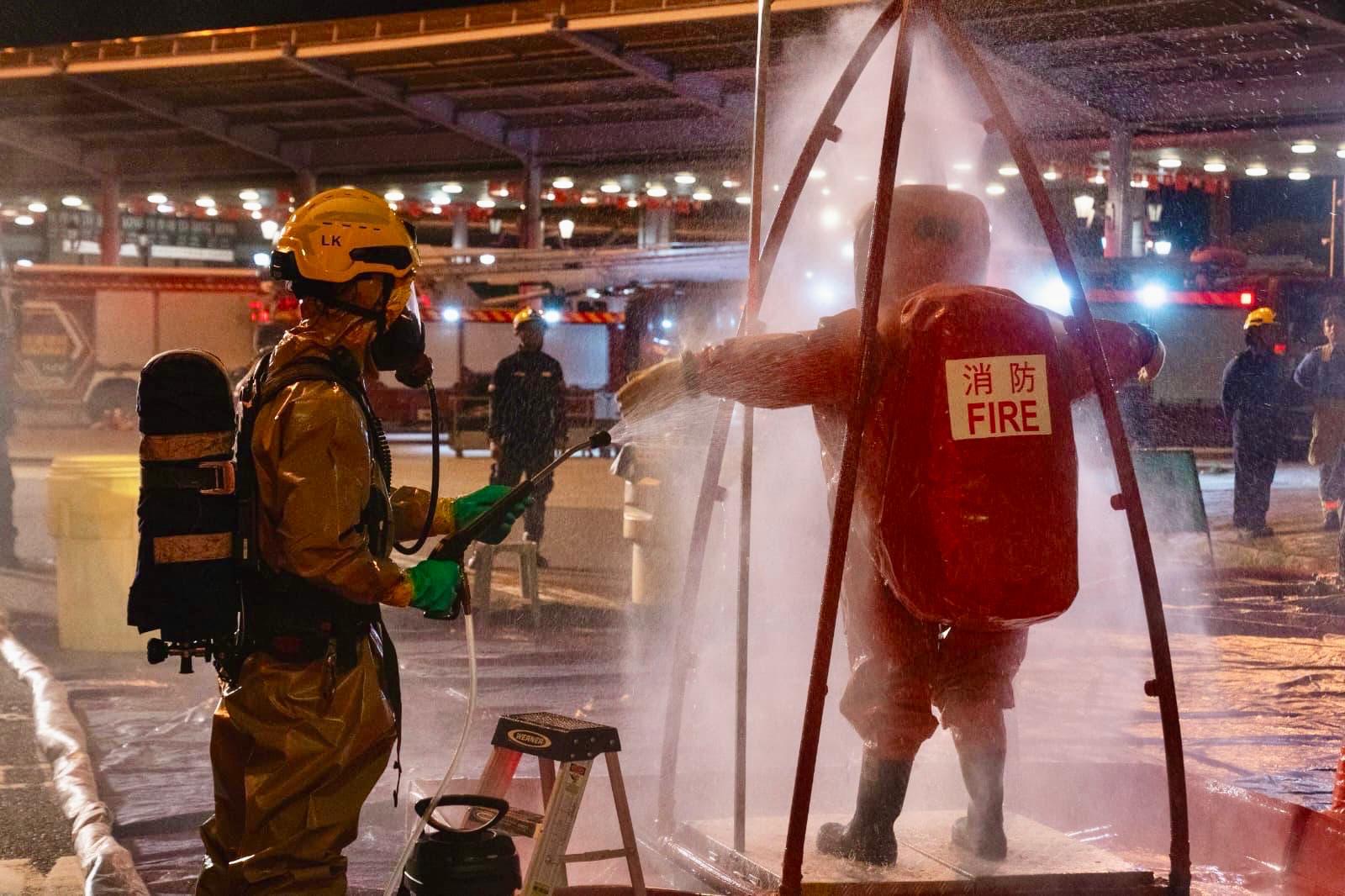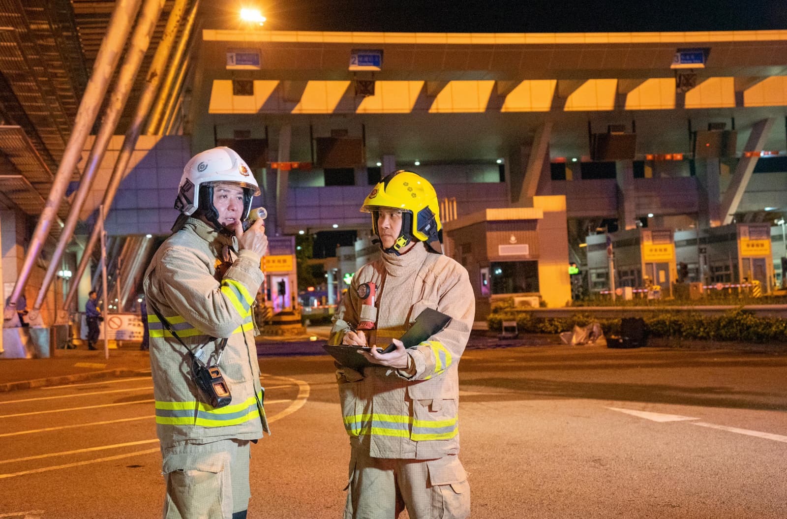 消防處與深圳市消防救援支隊,聯(lián)同警務處、入境處、海關和民眾安全服務隊,今日(13日)在深圳灣口岸旅檢大樓舉行危害物質(zhì)事故聯(lián)合演練,模擬深港分界線位置有刺激性物質(zhì)洩漏和火警事故,現(xiàn)場有工作人員及旅客受傷。