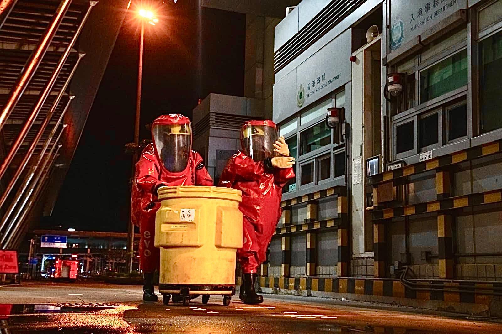 兩地消防及救護人員按既定應急機制,迅速趕赴現(xiàn)場展開滅火救援工作,並設立「危害物質(zhì)事故」洗消設施。救護人員使用「大量傷者事故檢傷分流系統(tǒng)」為傷者分流和處理傷勢,傷者及旅客其後由海關及入境處職員協(xié)助補辦出入境及清關手續(xù)。而警務處及民安隊人員則在現(xiàn)場管理人流。