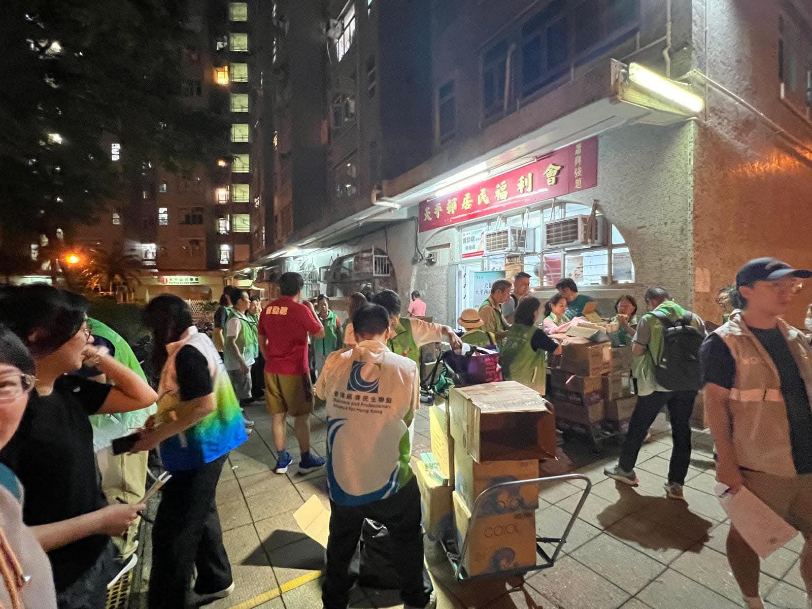 昨晚,在北區(qū)民政事務(wù)專員的指揮下,北區(qū)10多名區(qū)議員及五支關(guān)愛隊到場支援,聯(lián)同北區(qū)民政事務(wù)處及社會福利署職員逐層探訪,了解受影響住戶(尤其是長者)的需要,並送上物資,包括樽裝水、電、充電寶及手提風(fēng)扇。大家群策群力,為受影響街坊解燃眉之急。